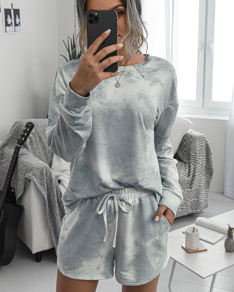 Tie-Dye Two-piece Cotton T-Shirt Lace-up Shorts Loungewear