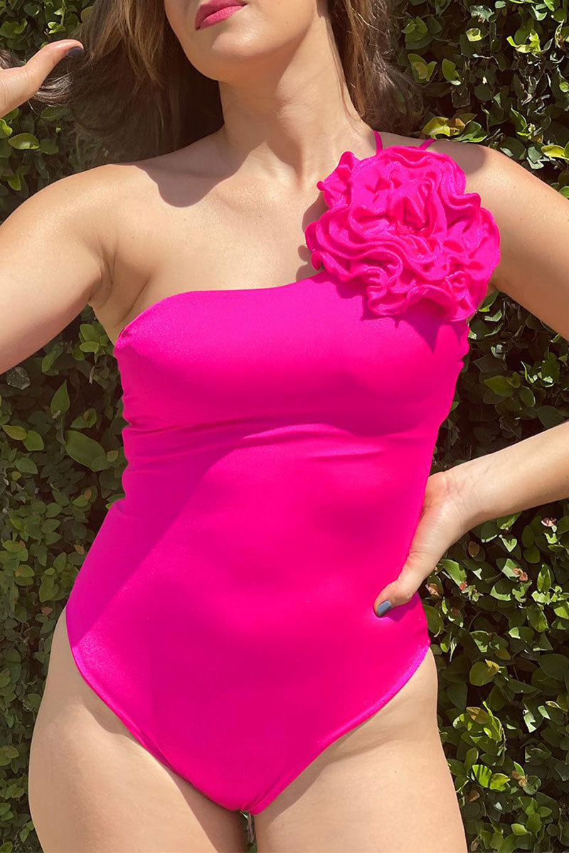 3D Flower Decor One Shoulder On-trend One Piece Swimwear