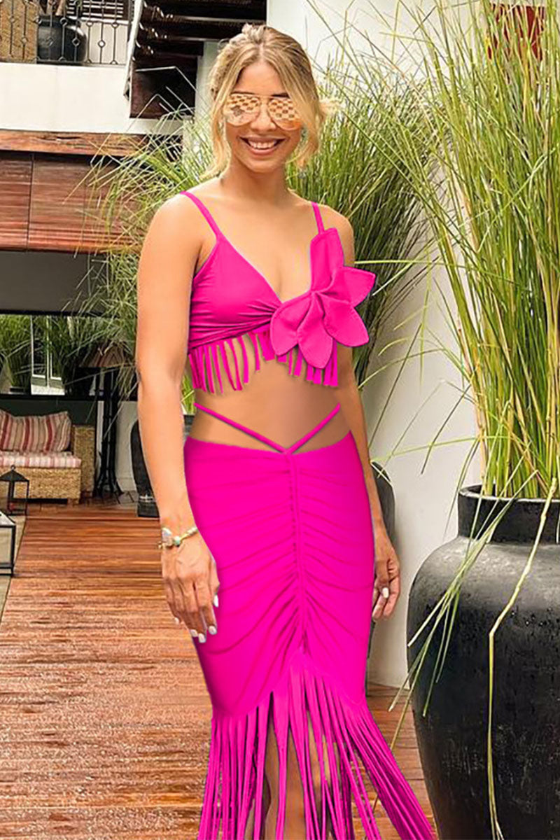 3D Petal Decor Romantic Tassel Drawstring Three Pieces