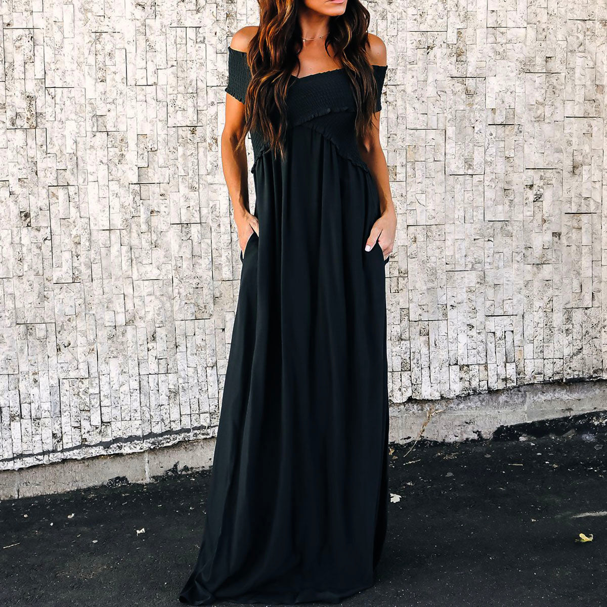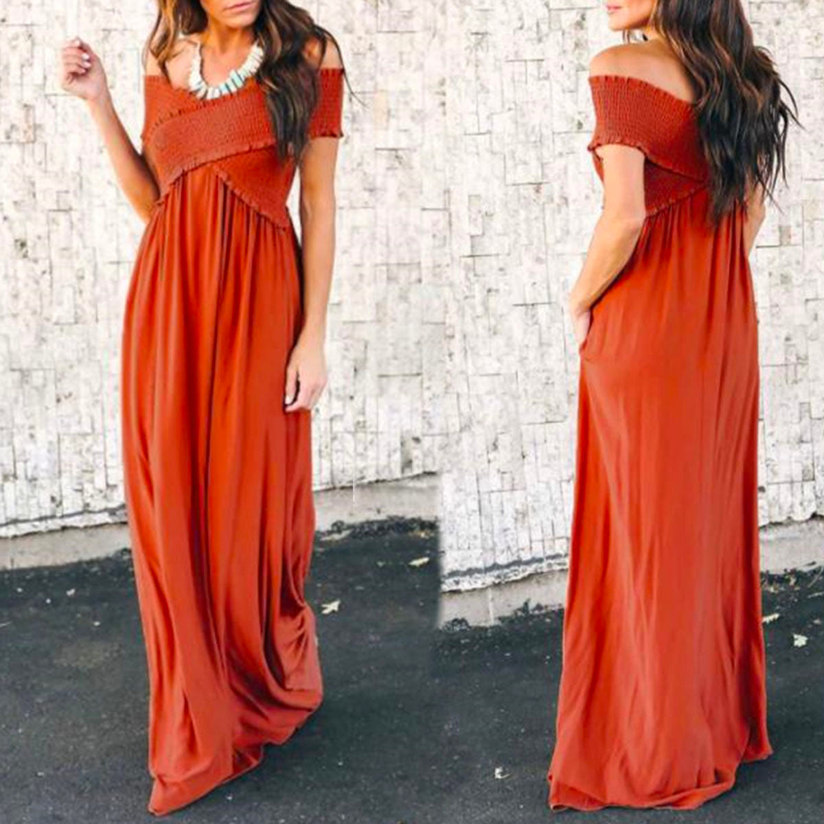 | Product Name | Wrinkle Off The Shoulder Party Vacation Maxi Dresses |