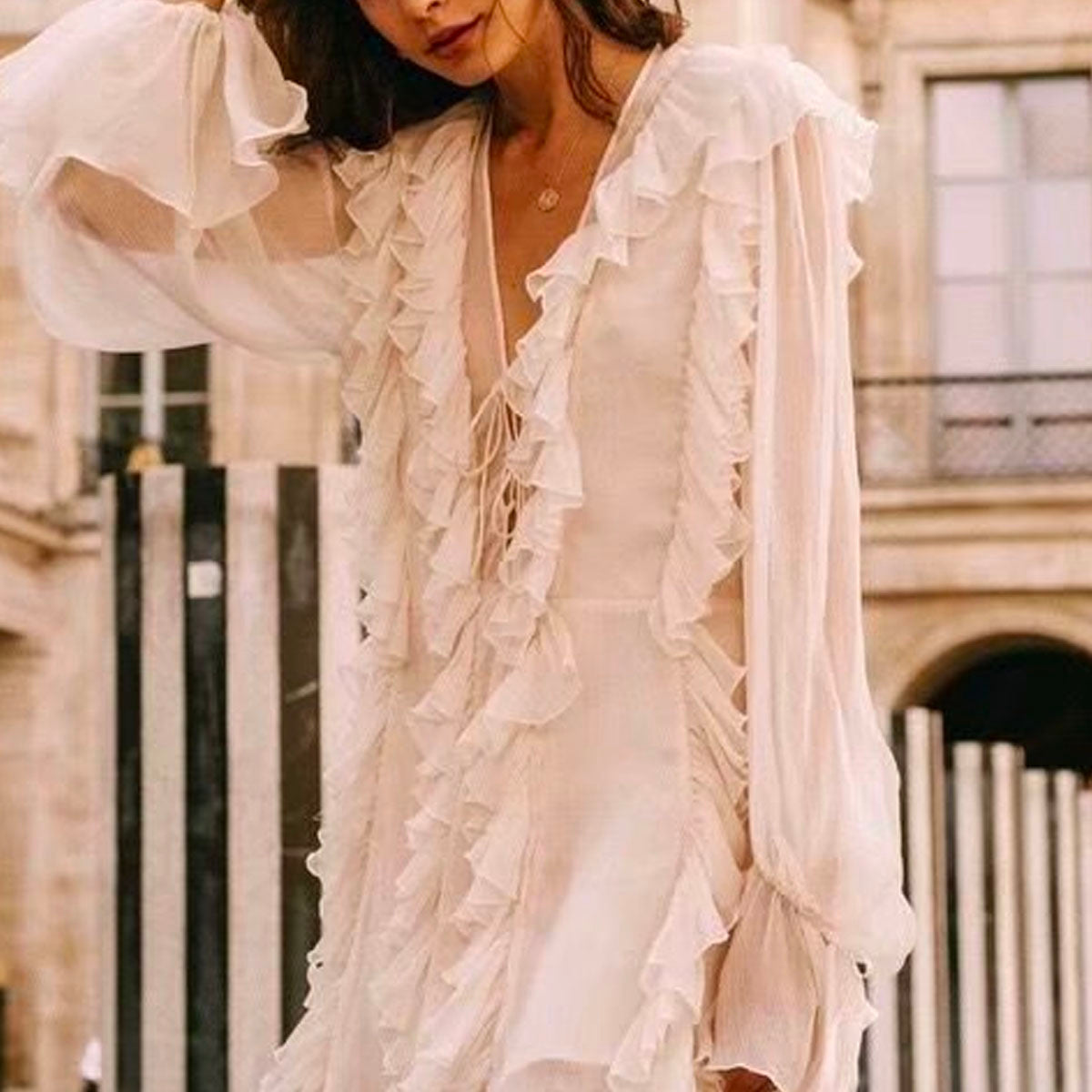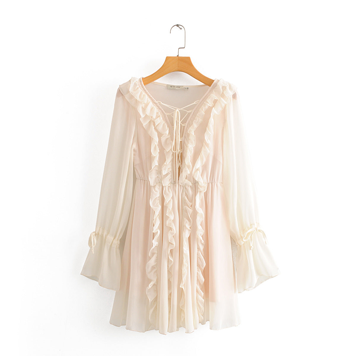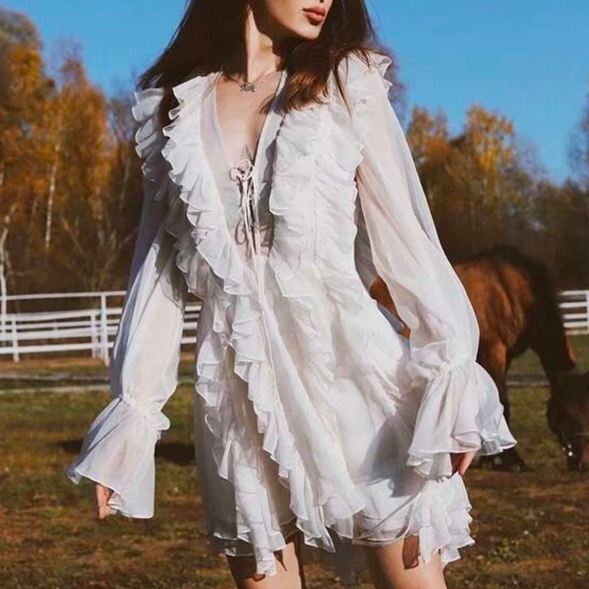 | Product Name | White Multi-layer Lace Cross Ruffle Vacation Mini Dresses |