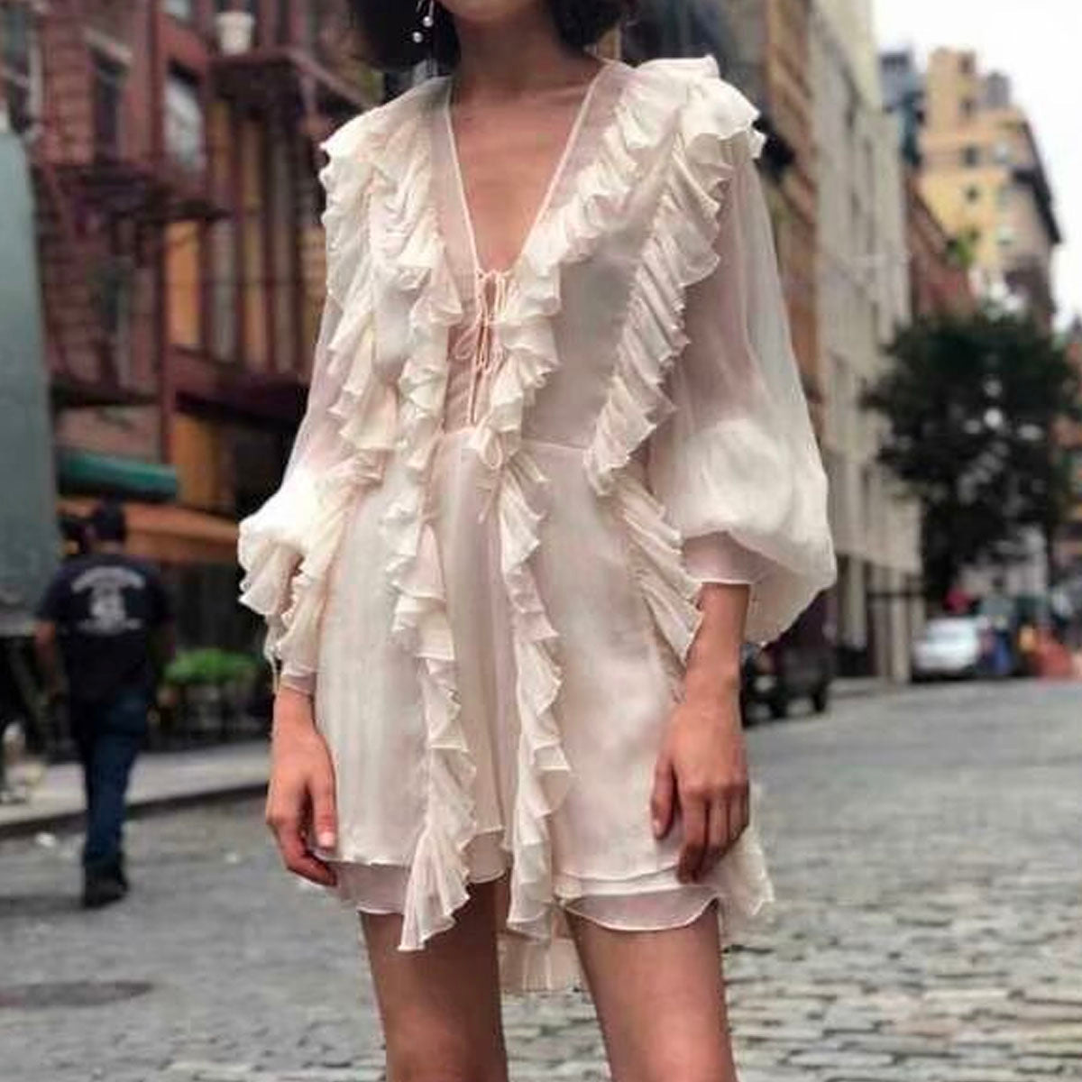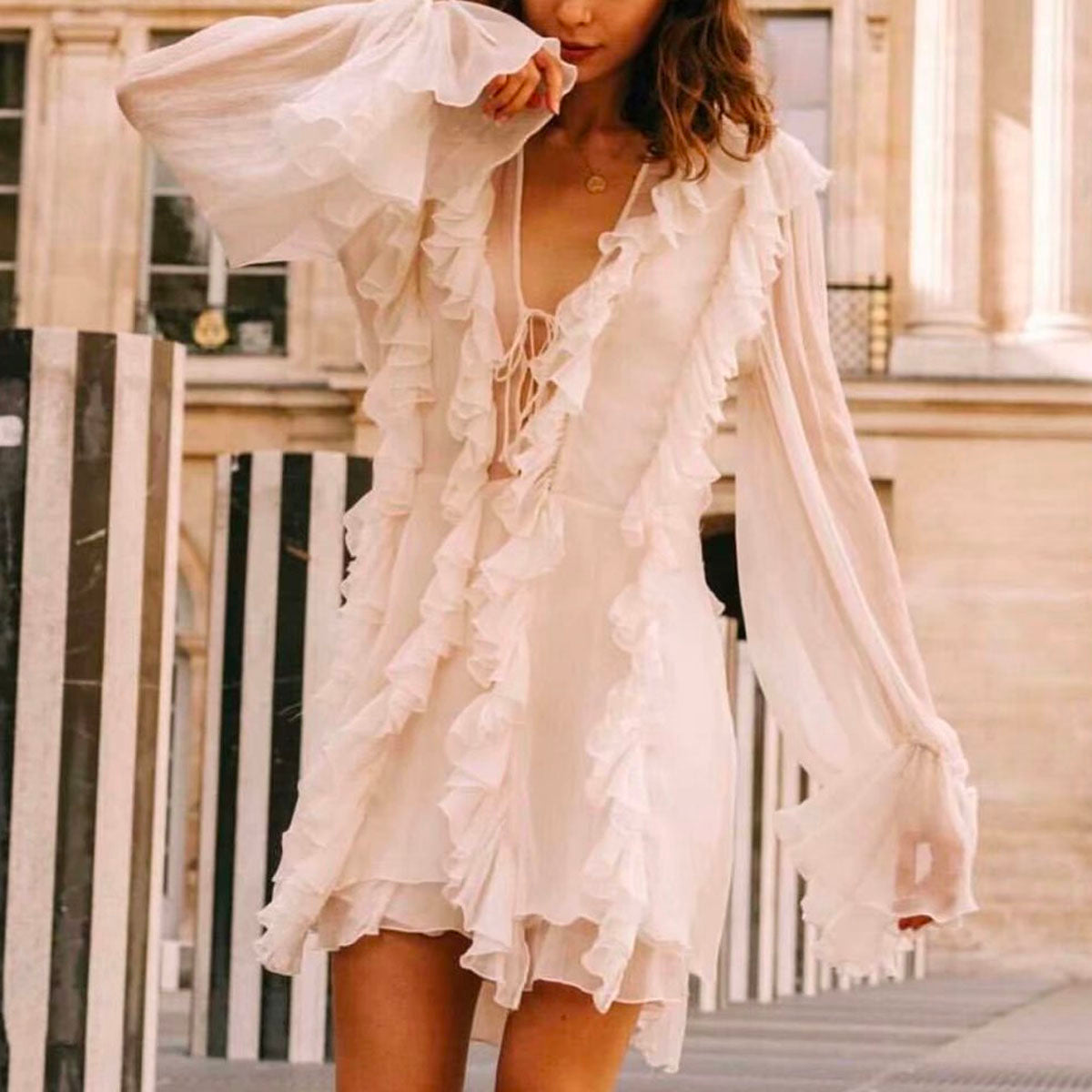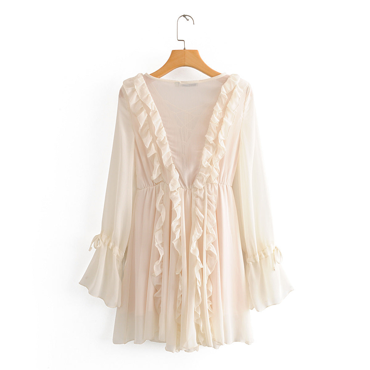 | Product Name | White Multi-layer Lace Cross Ruffle Vacation Mini Dresses |