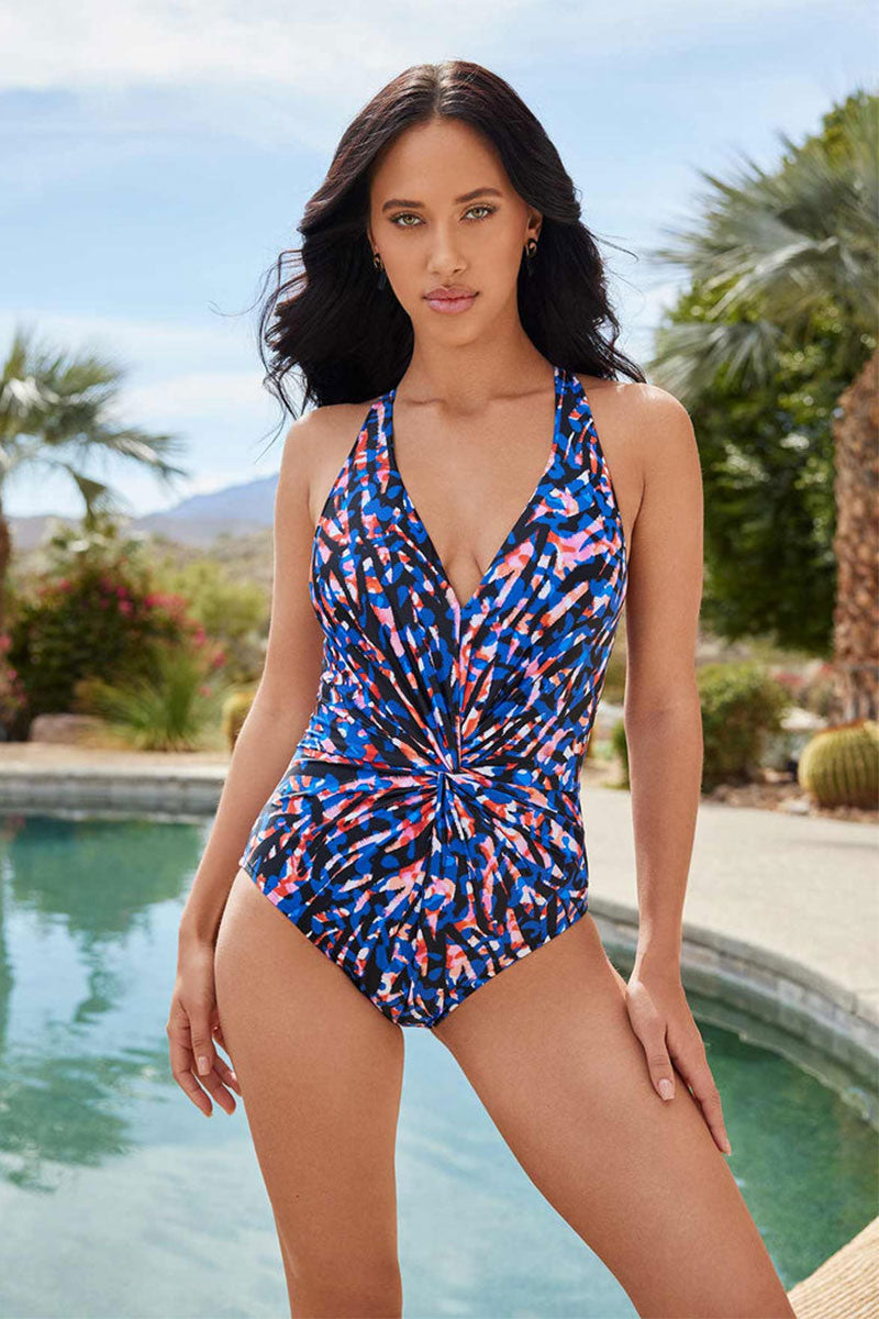 Abstract Print On-trend Twist Front One Piece Swimwear