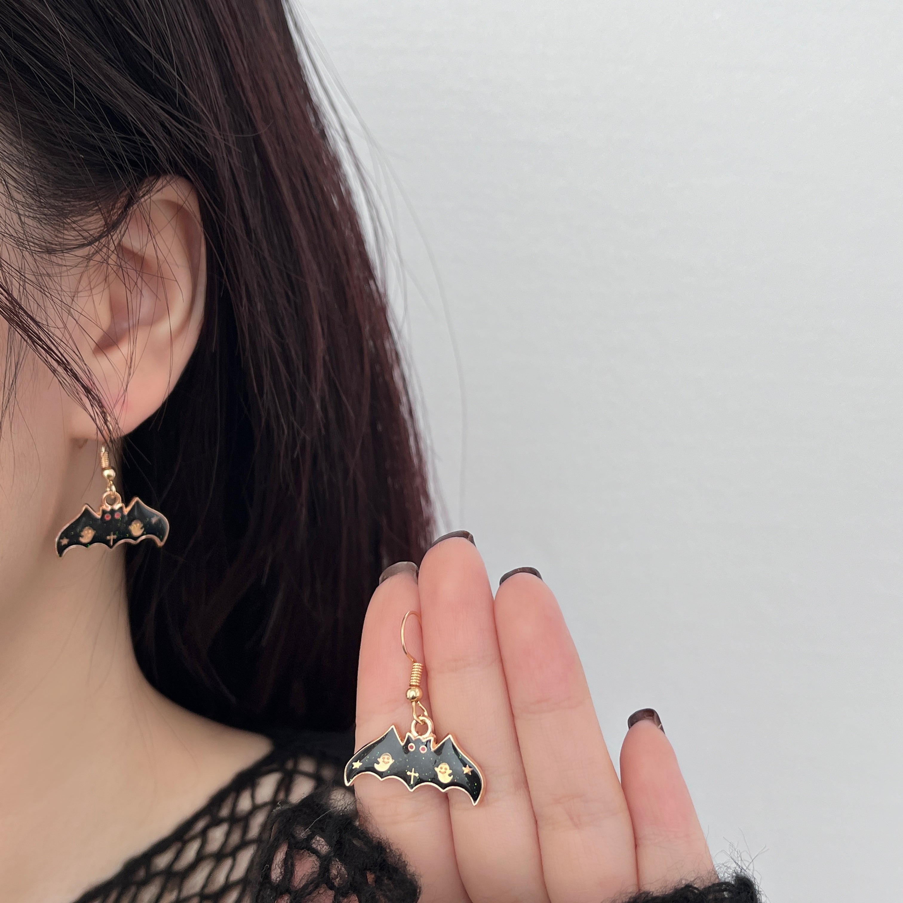 Bat shape pendant drop earrings