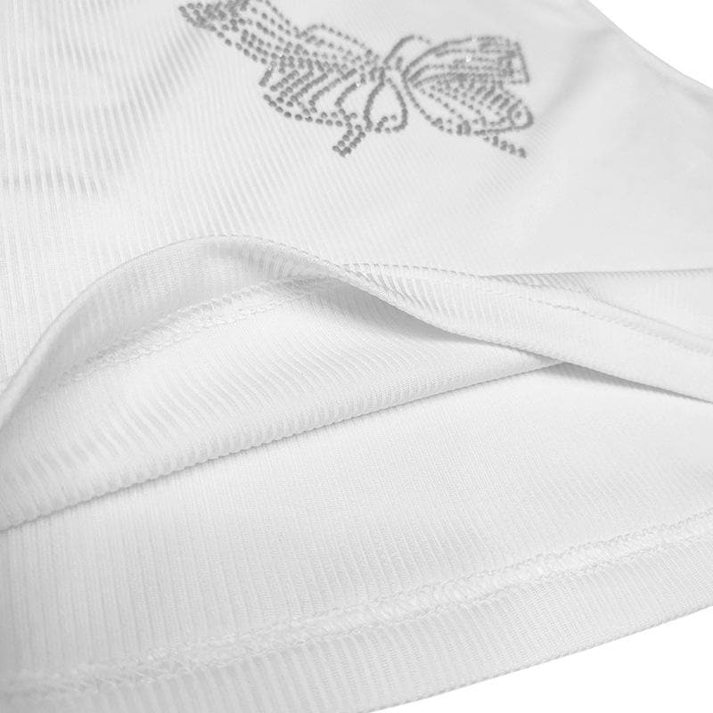 Beaded butterfly pattern ribbed solid sleeveless crop top