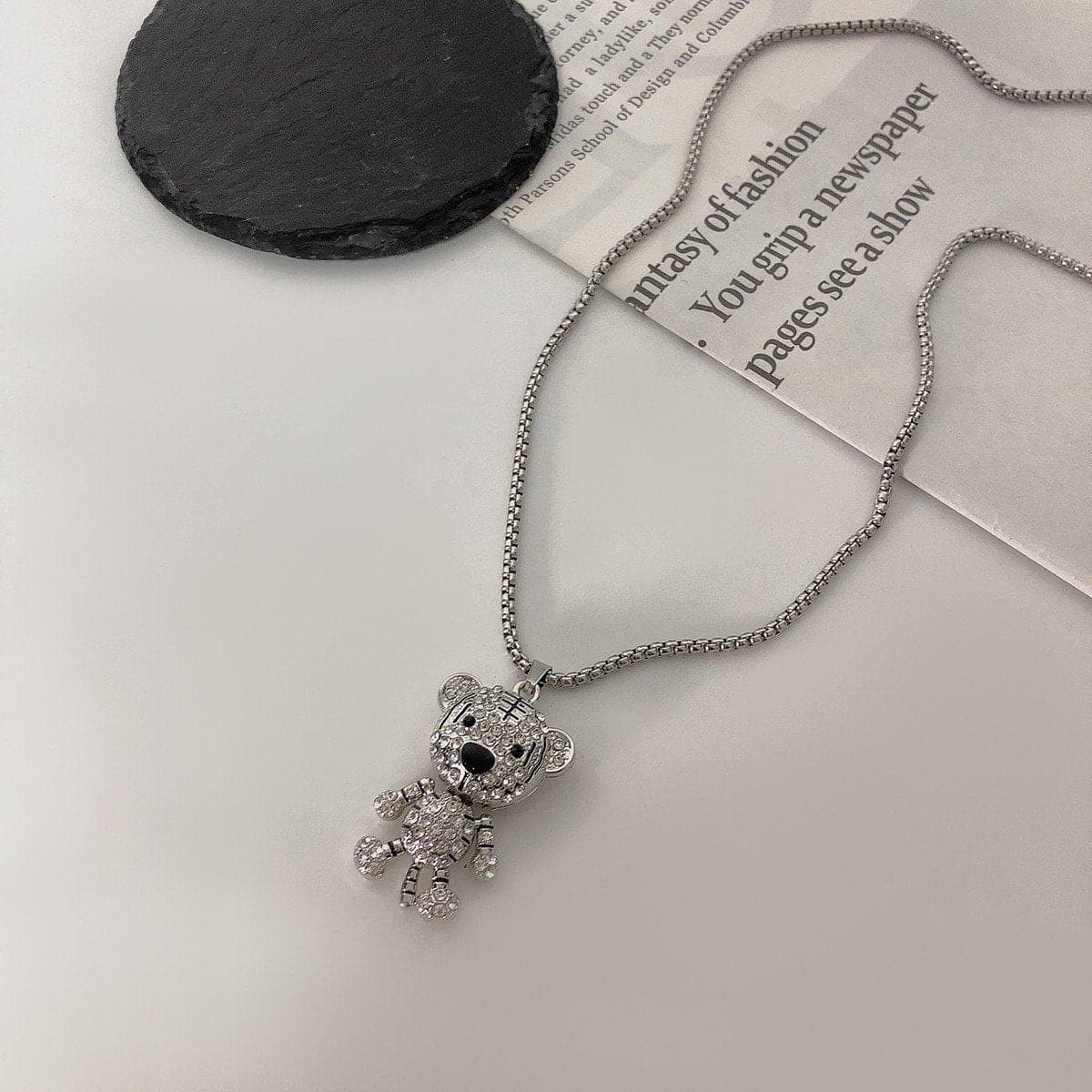 Bear pendant rhinestone necklace