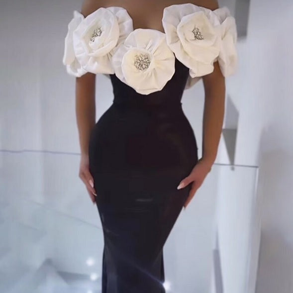 Romantic and Beautiful: The combination of a strapless design. intricate floral embellishments. and a flowing maxi length creates a look that is both romantic and beautiful. perfect for making a lasting impression.
