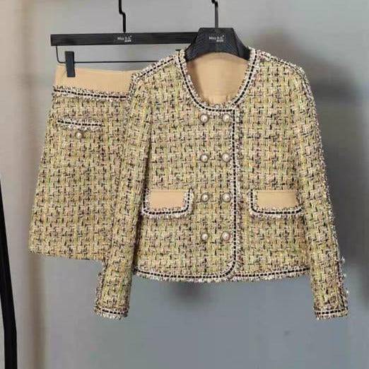 - The ensemble is completed with a short skirt that perfectly complements the top. creating a cohesive and relaxed look.