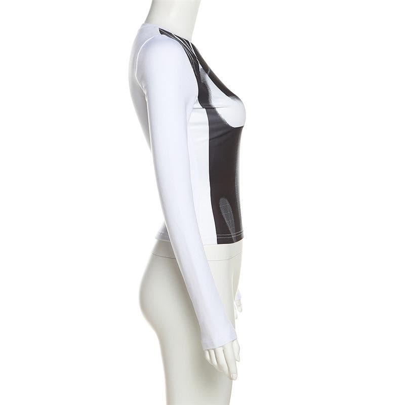 Body print long sleeve contrast crewneck top
