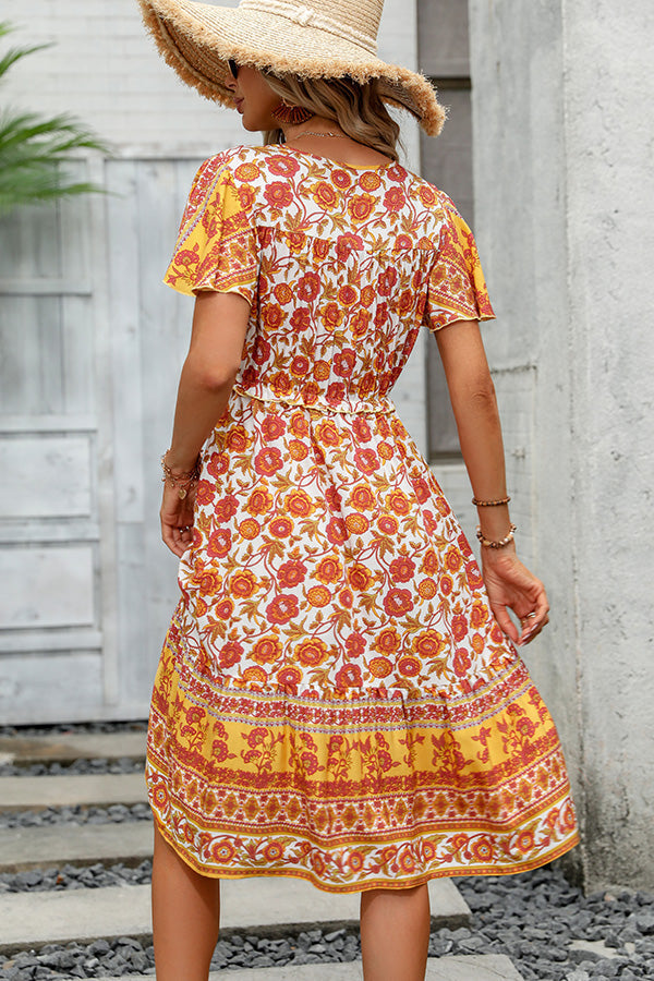 Bohemia Print V Neck Short Sleeve Casual Dress