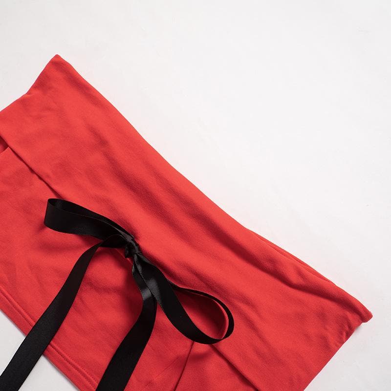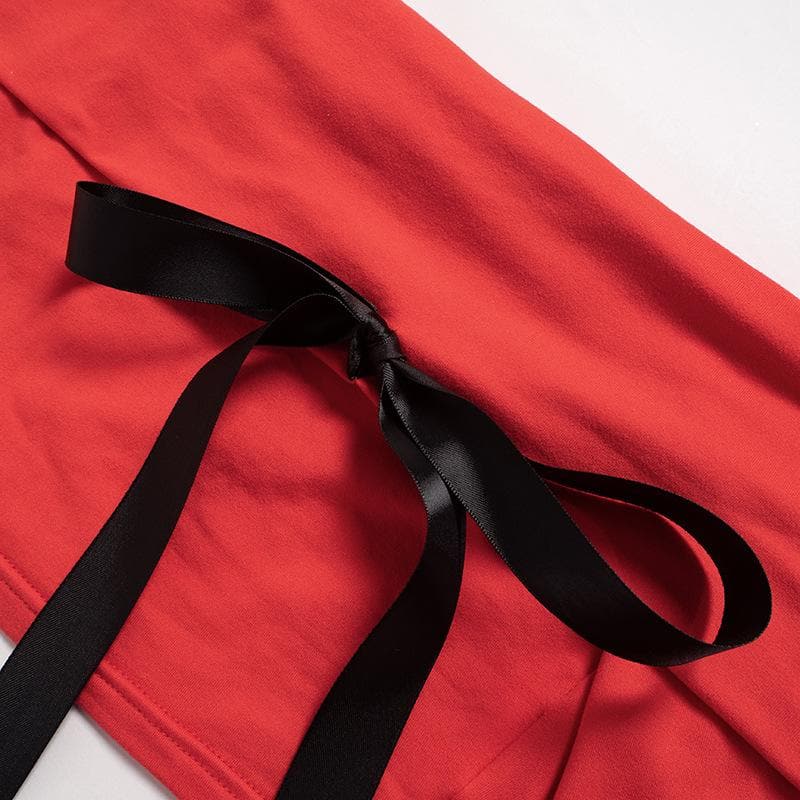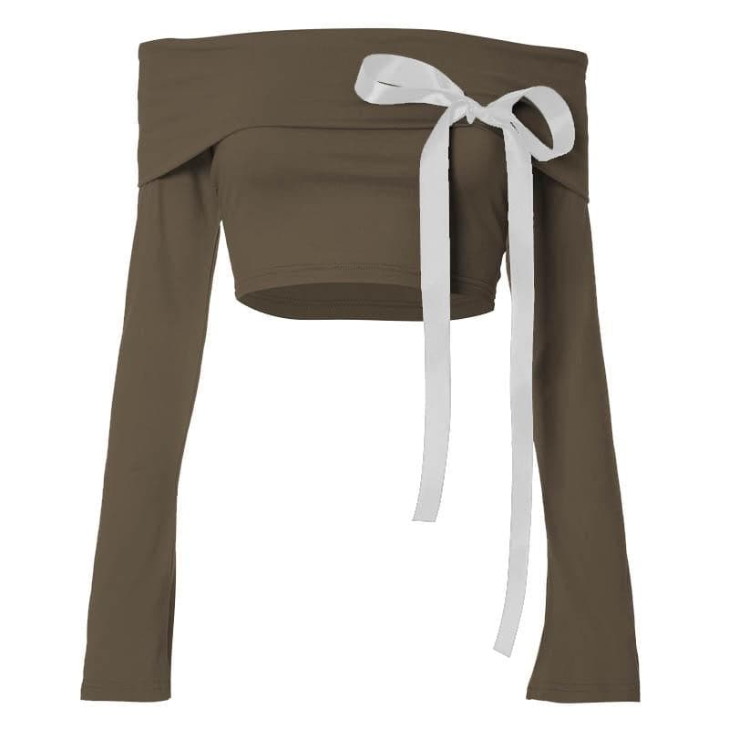 Bowknot applique ruched off shoulder long sleeve contrast top