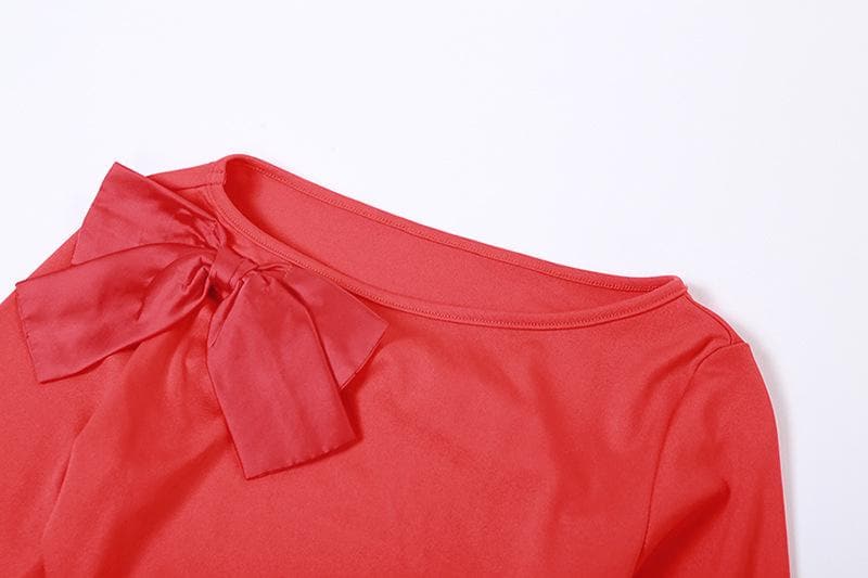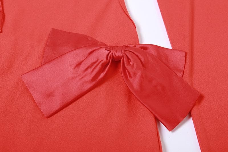 Bowknot backless hollow out solid long sleeve maxi dress