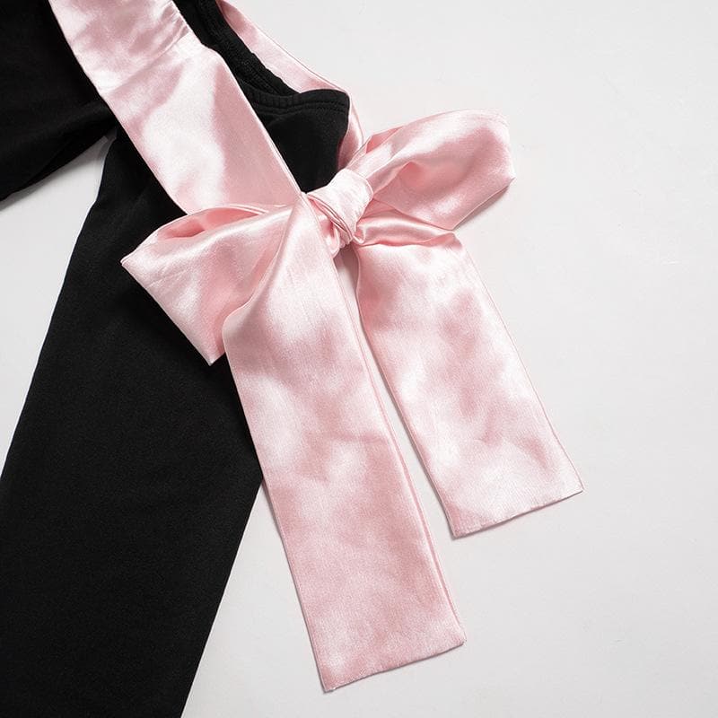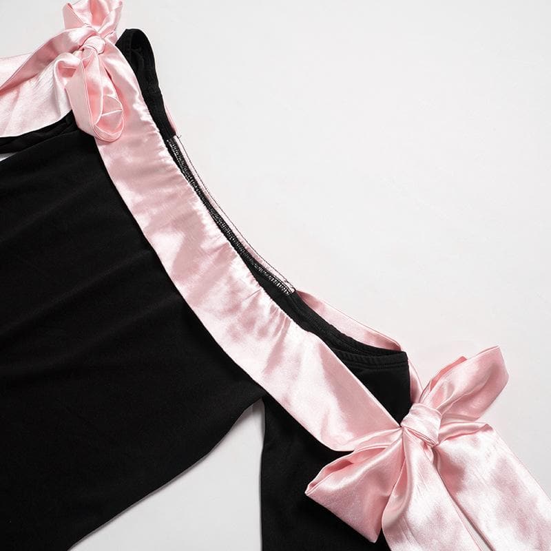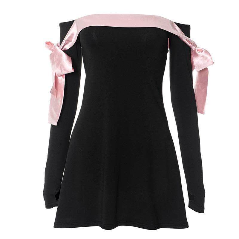 Bowknot contrast gloves long sleeve 3-way off shoulder mini dress