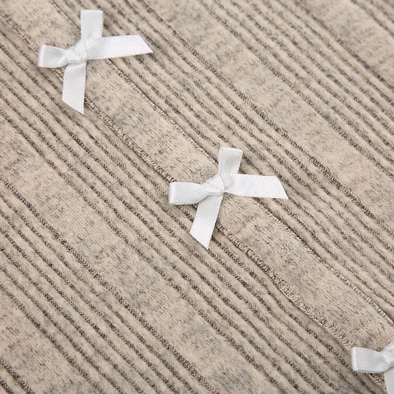 Bowknot contrast halter patchwork ruffle long sleeve top