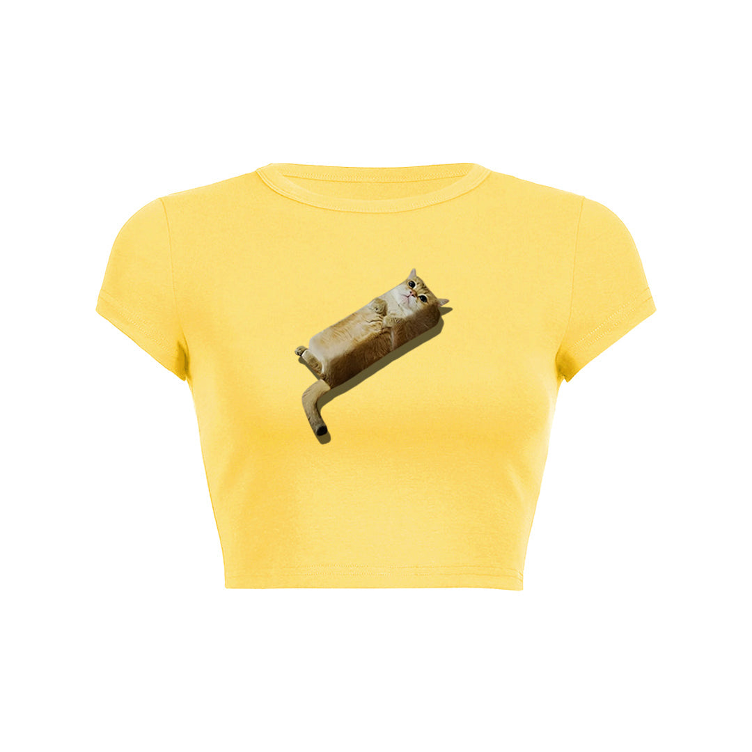 Bread cat print crop top baby tee