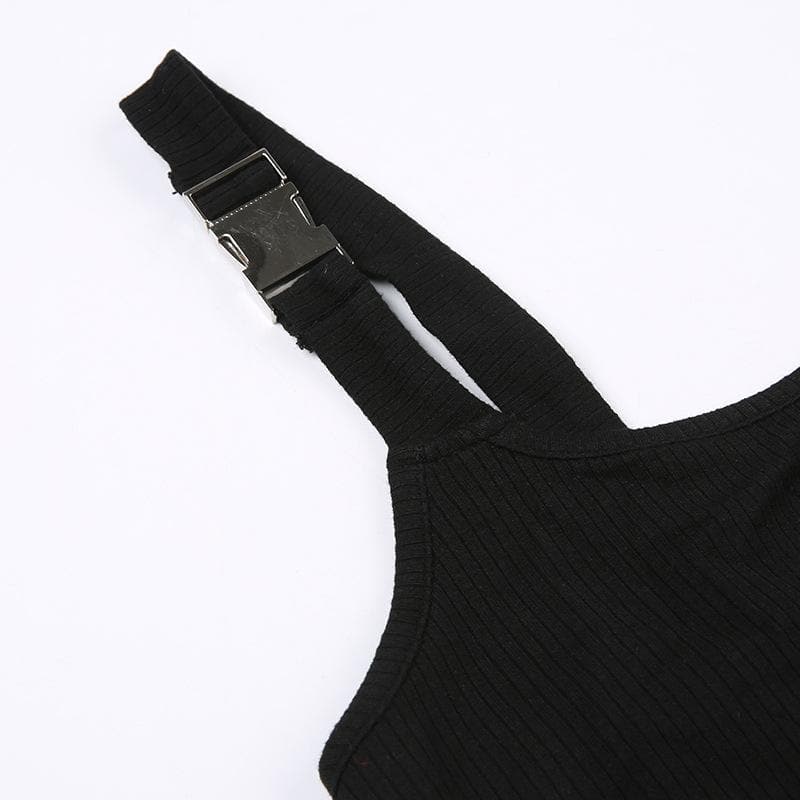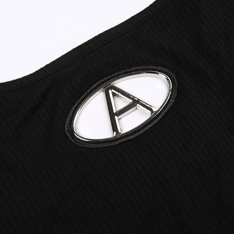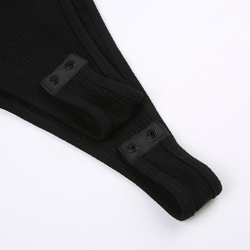 Buckle hollow out u neck "A" applique backless bodysuit