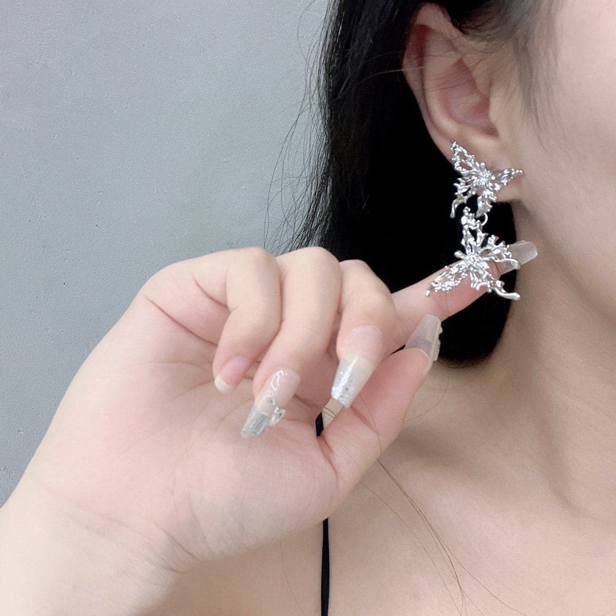 Butterfly pendant lava silver earrings
