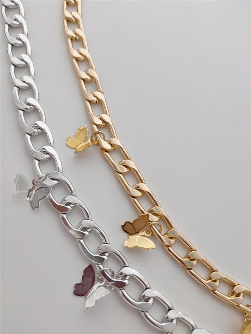 Butterfly pendant metal choker necklace