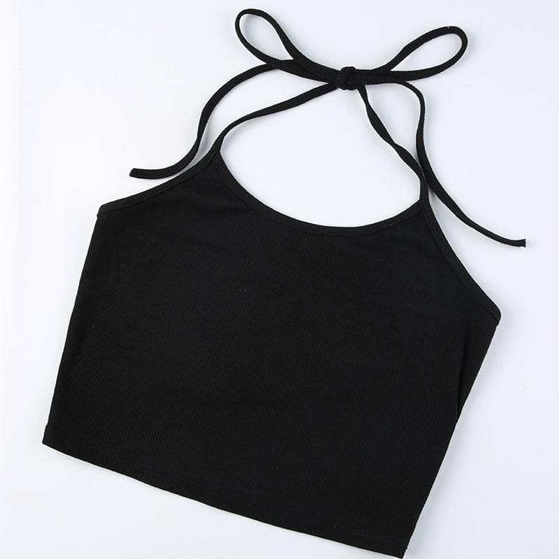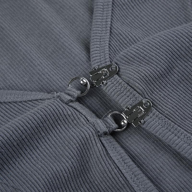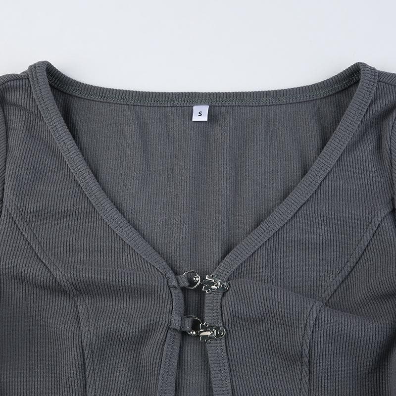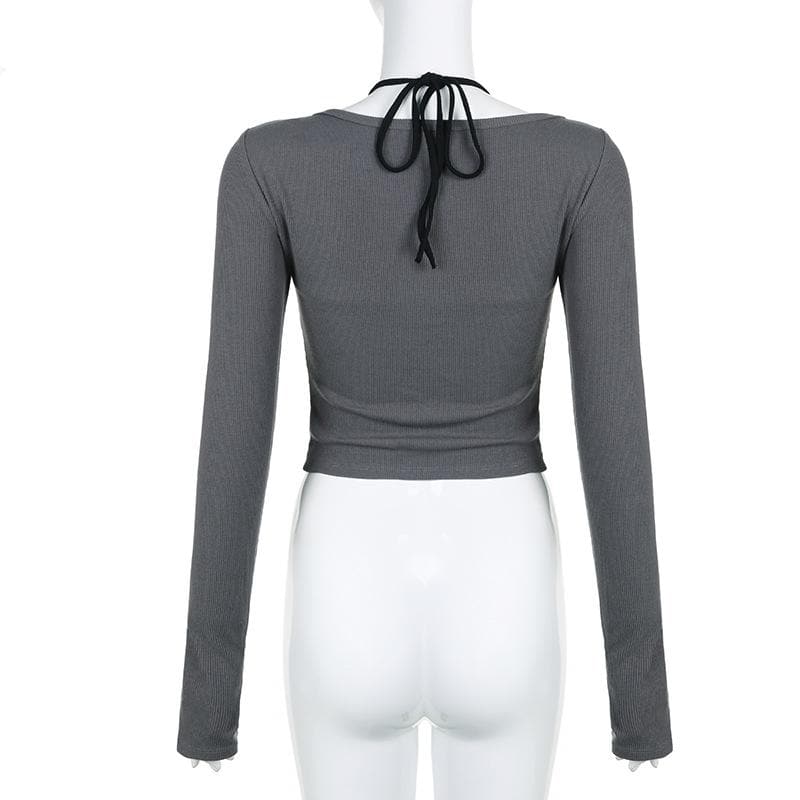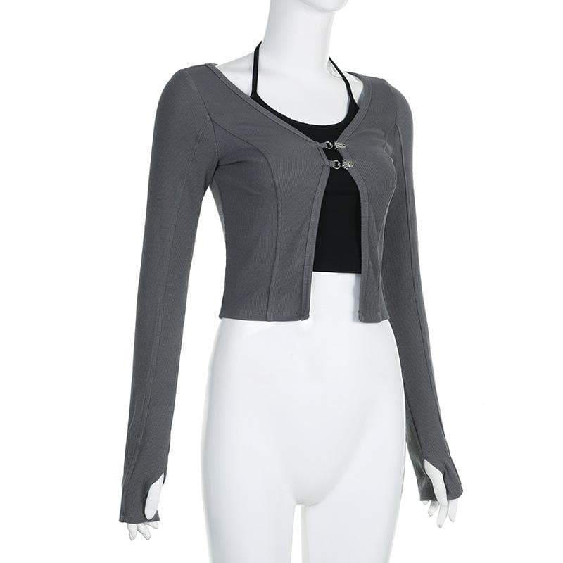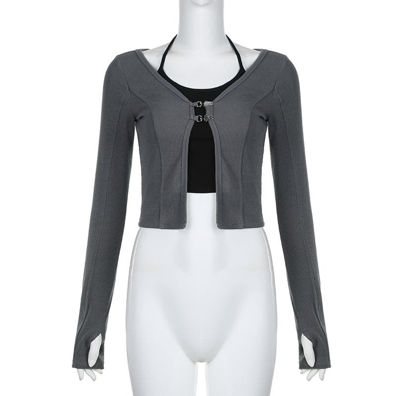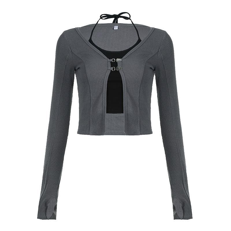 Button stitch long sleeve gloves contrast halter 2 piece crop top