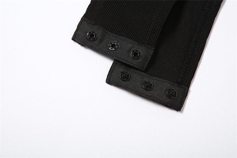 Cap sleeve solid gloves metal tag hoodie button bodysuit