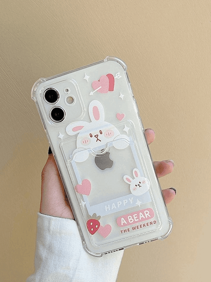 Card Holder Detail Cartoon Pattern Clear Iphone Case