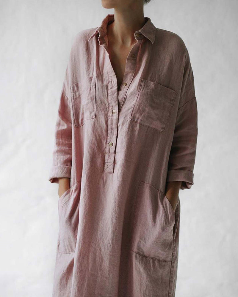 Casual Button Raglan Long Sleeve Pockets Loose Shirt Dress Lounge Midi Dresses Beach Cover Up?