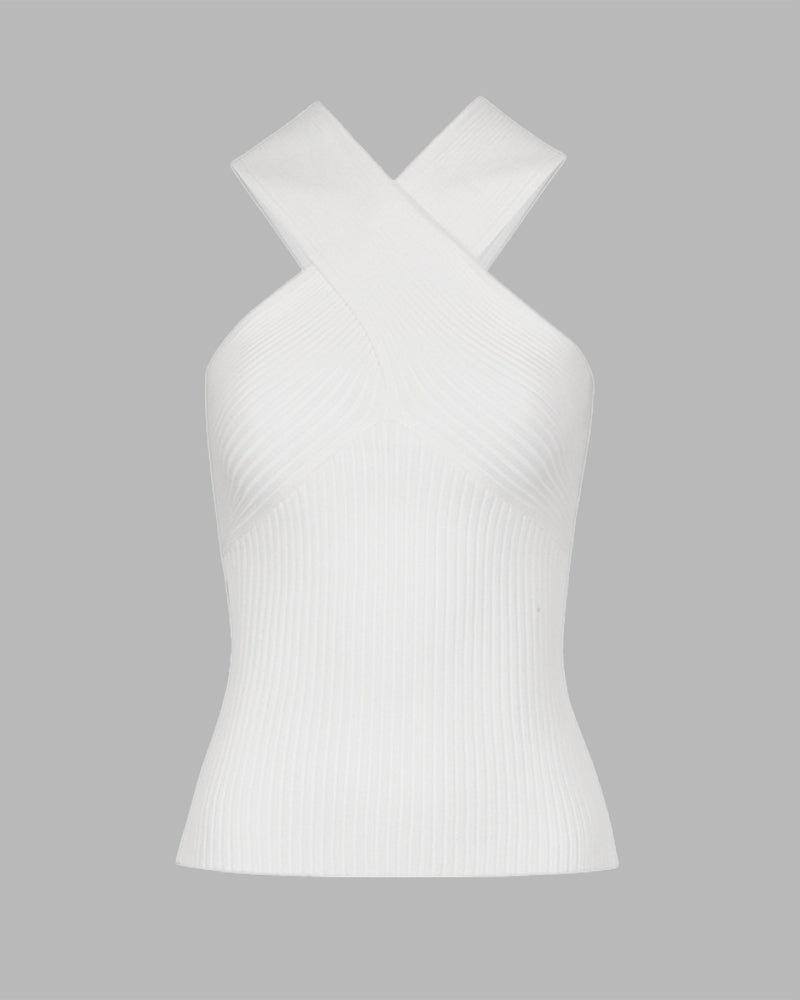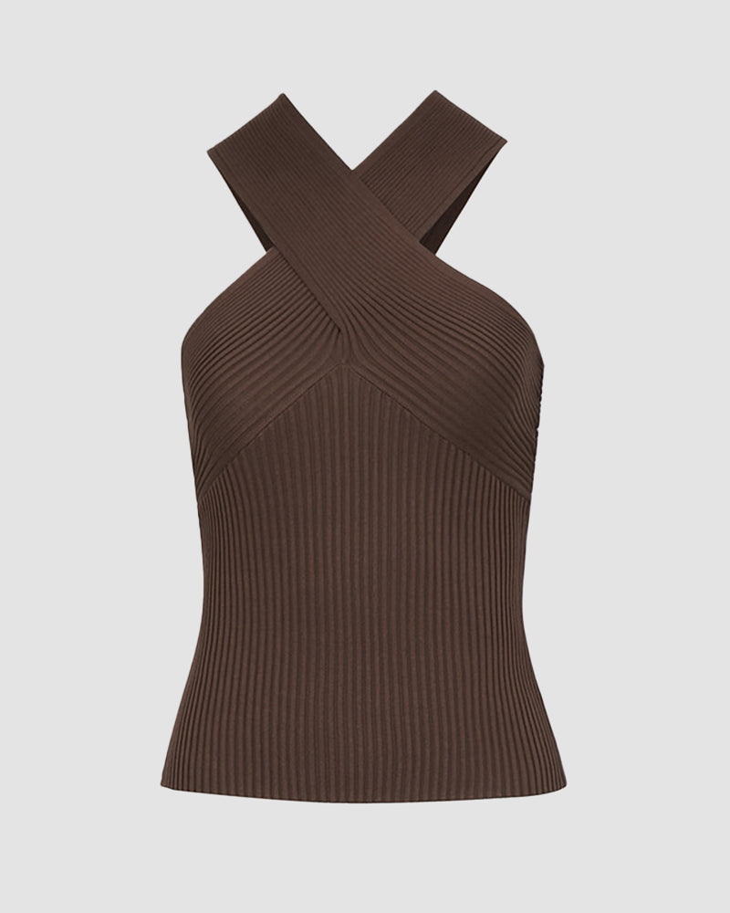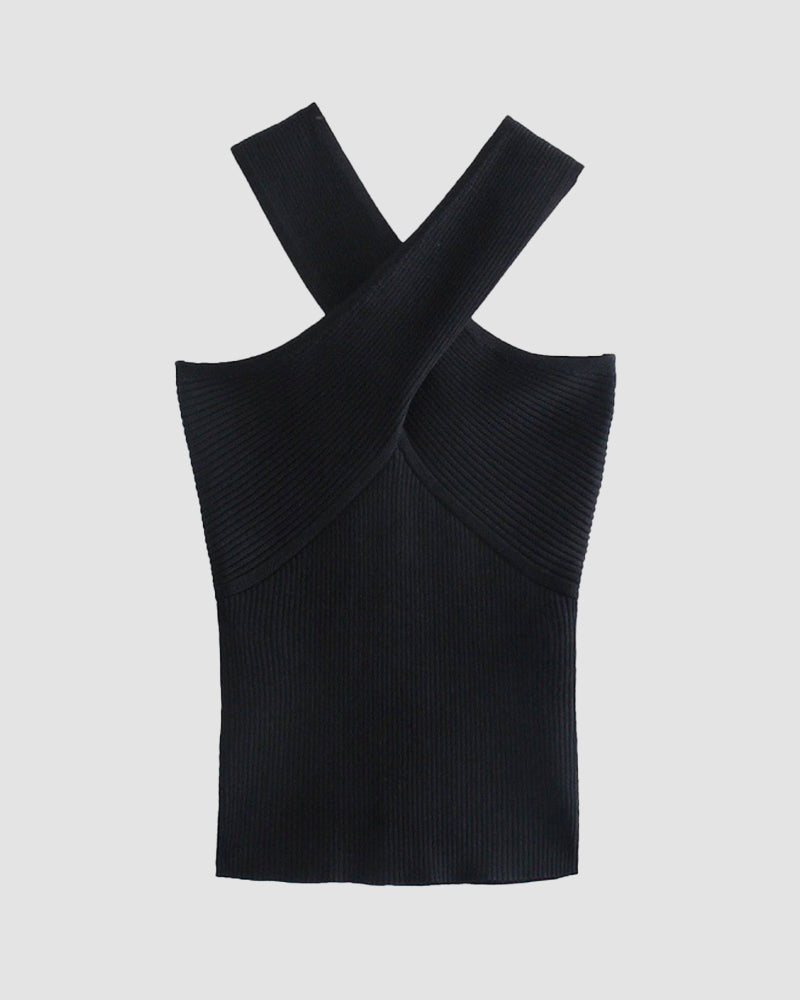 Casual Knitted Tank Tops Crisscross Front Halter Knit Top?