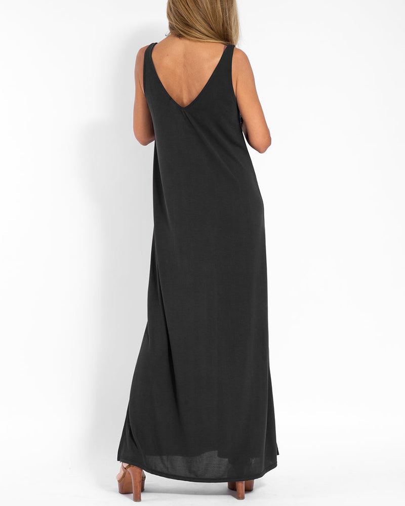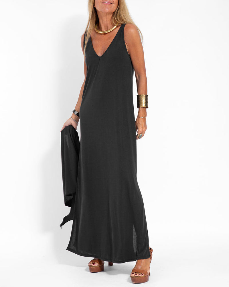 Casual Loose Dress Sleeveless Deep V Neck Split Beach Maxi Long Dress