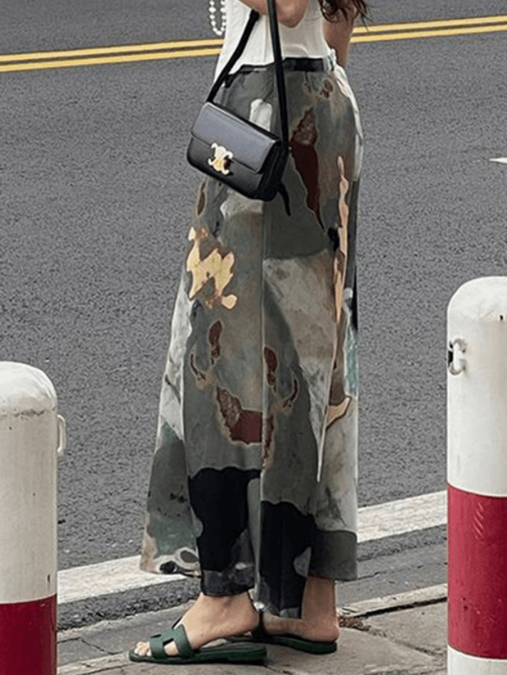 Description:This vintage-inspired midi skirt boasts a chic smudge print that adds a touch of effortless elegance to any casual outfit.Crafted from soft and lightweight polyester fabric. this slim fit skirt is perfect for all-day comfort and easy movement.The slim straight version of this skirt creates a flattering silhouette that hugs your curves in all the right places.With its versatile design. this all-match long skirt can be dressed up or down for any occasion. making it a must-have in your wardrobe.Whether you're running errands or meeting friends for lunch. this stylish and comfortable casual skirt is the perfect choice for any laid-back look.