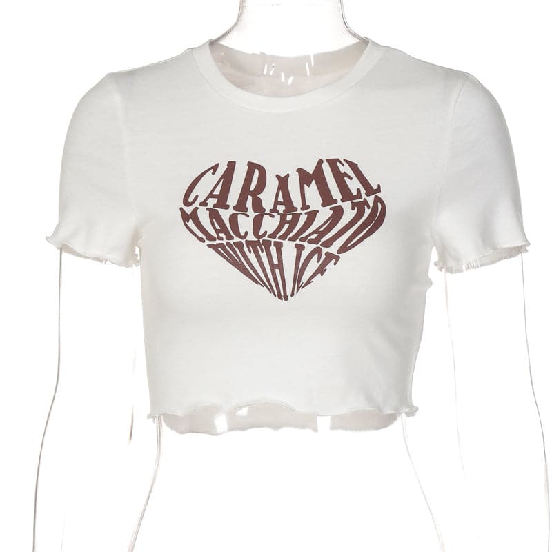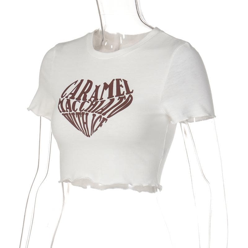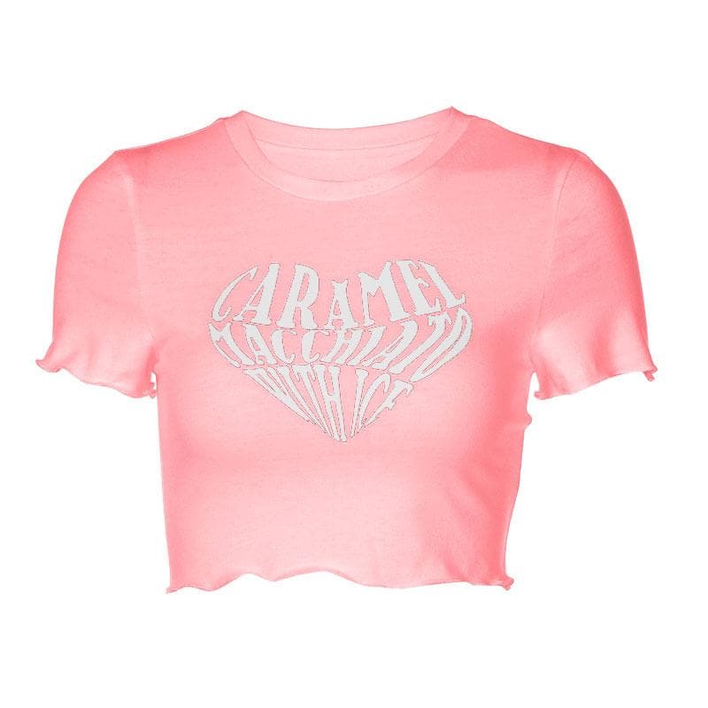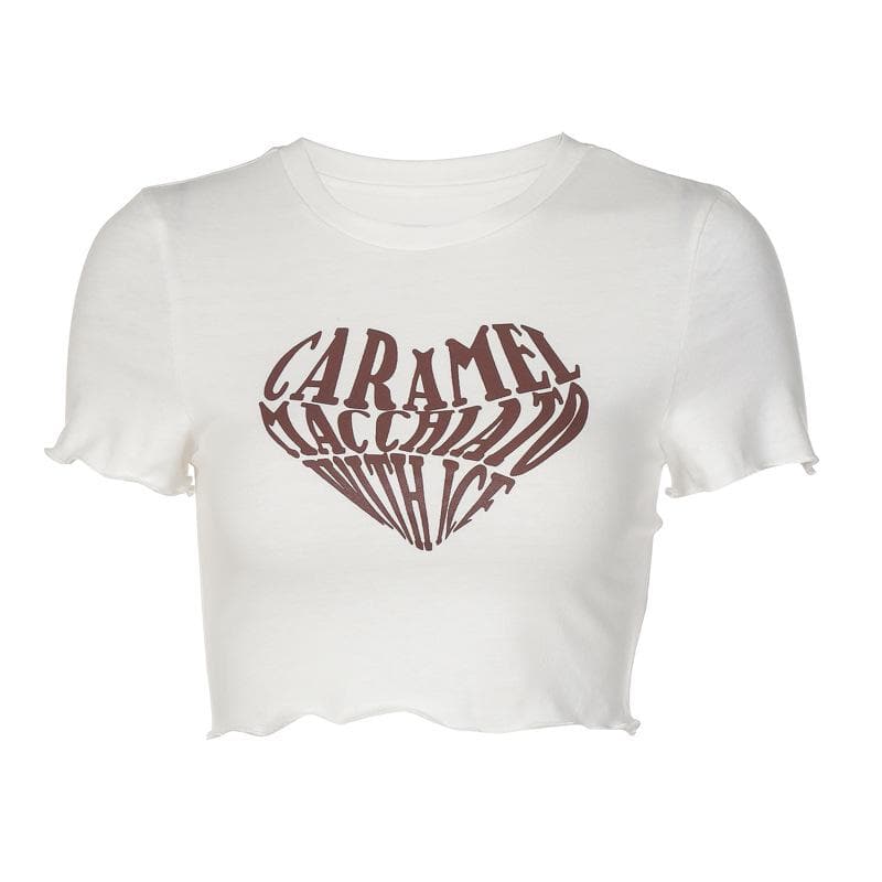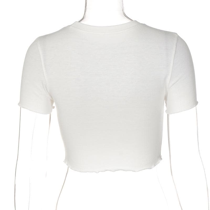 Contrast letter print ruffle crewneck crop top