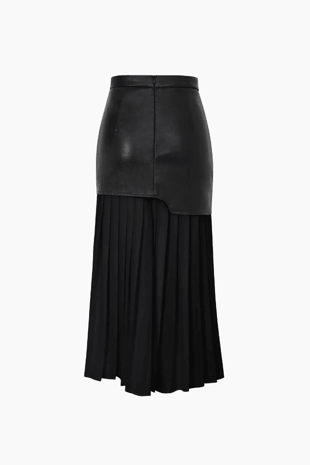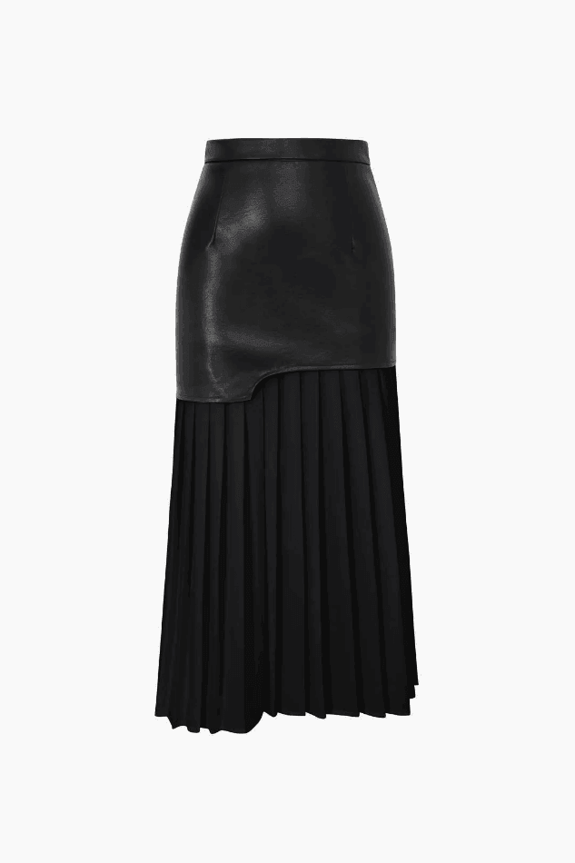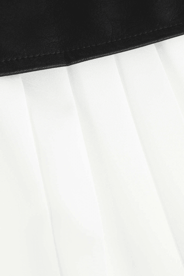 Contrast Pleated Faux Leather Midi Skirt