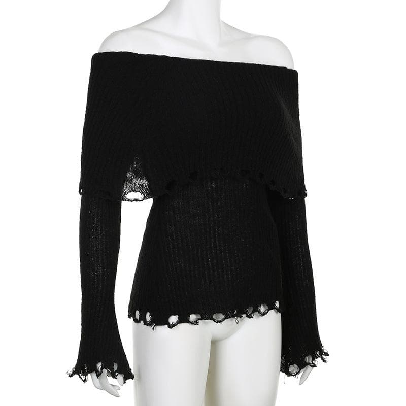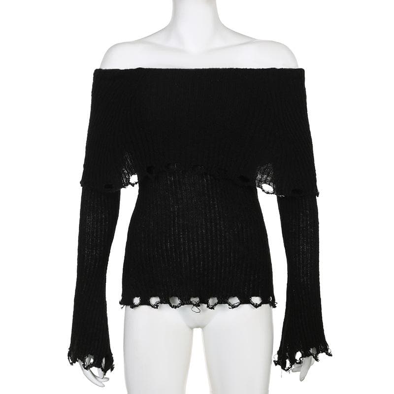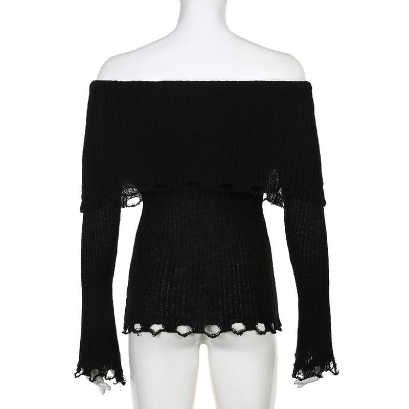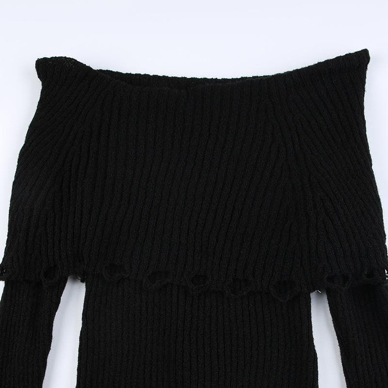 Crochet long sleeve hollow out off shoulder solid cut out top