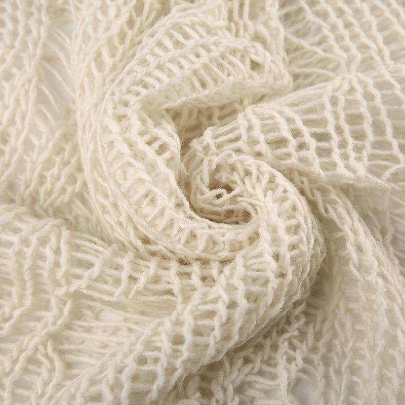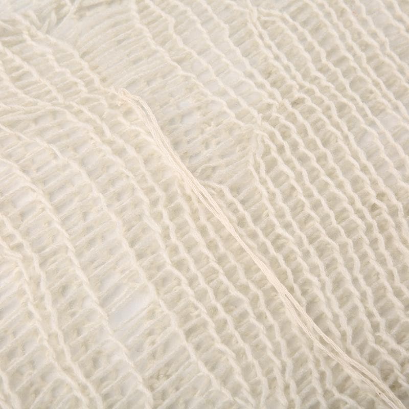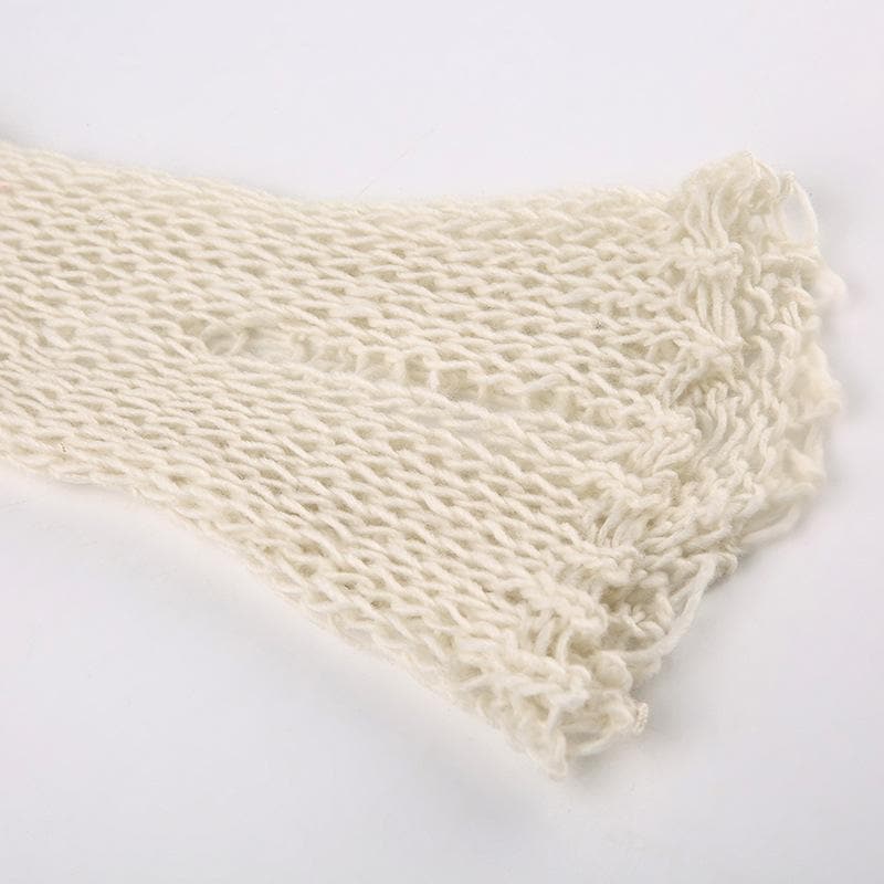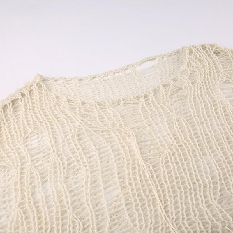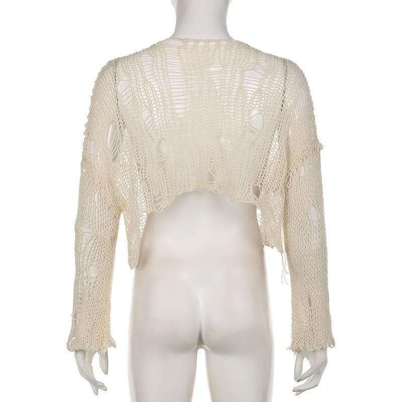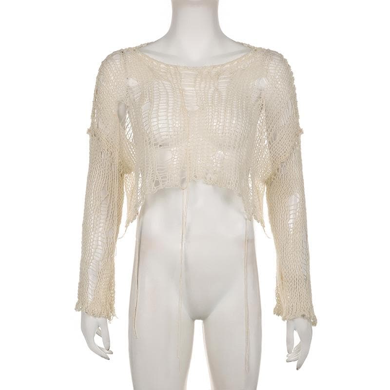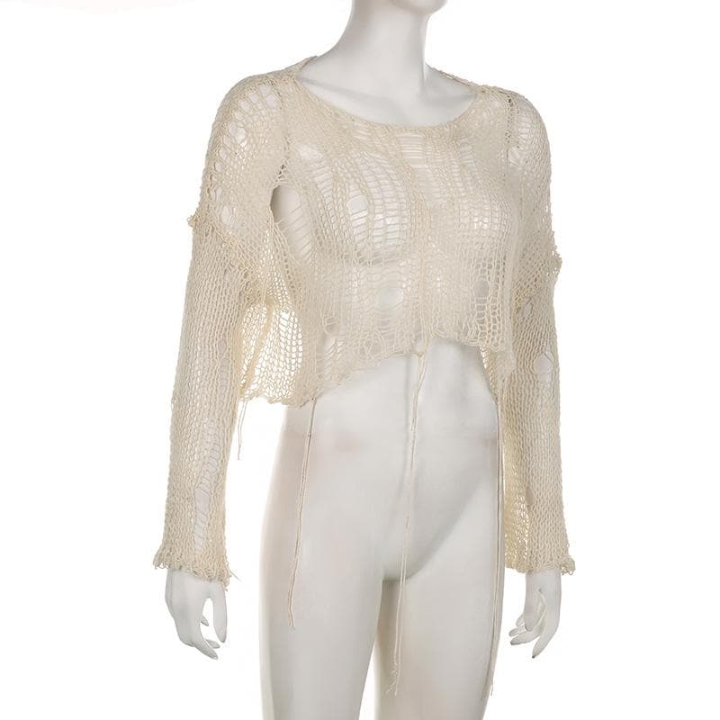 Crochet long sleeve solid hollow out round neck crop cut out top