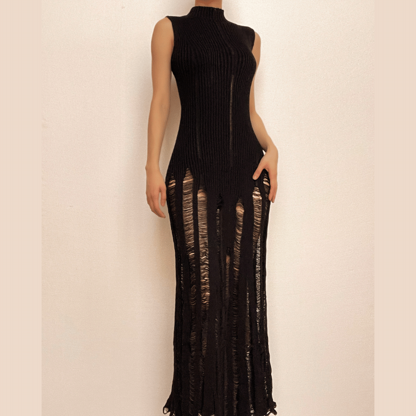 Crochet sleeveless solid hollow out crewneck maxi dress