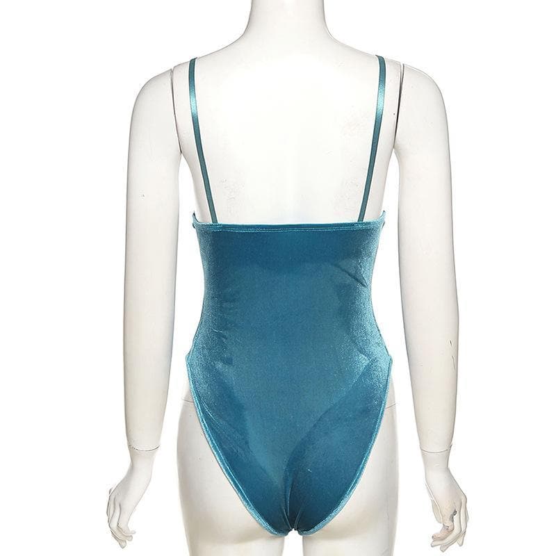 Deep v neck velvet bodysuit