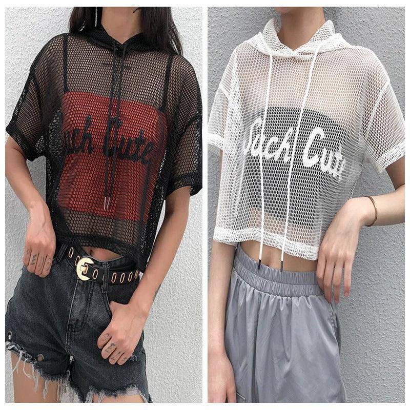 Dylan Hooded Fishnet Mesh Crop Top