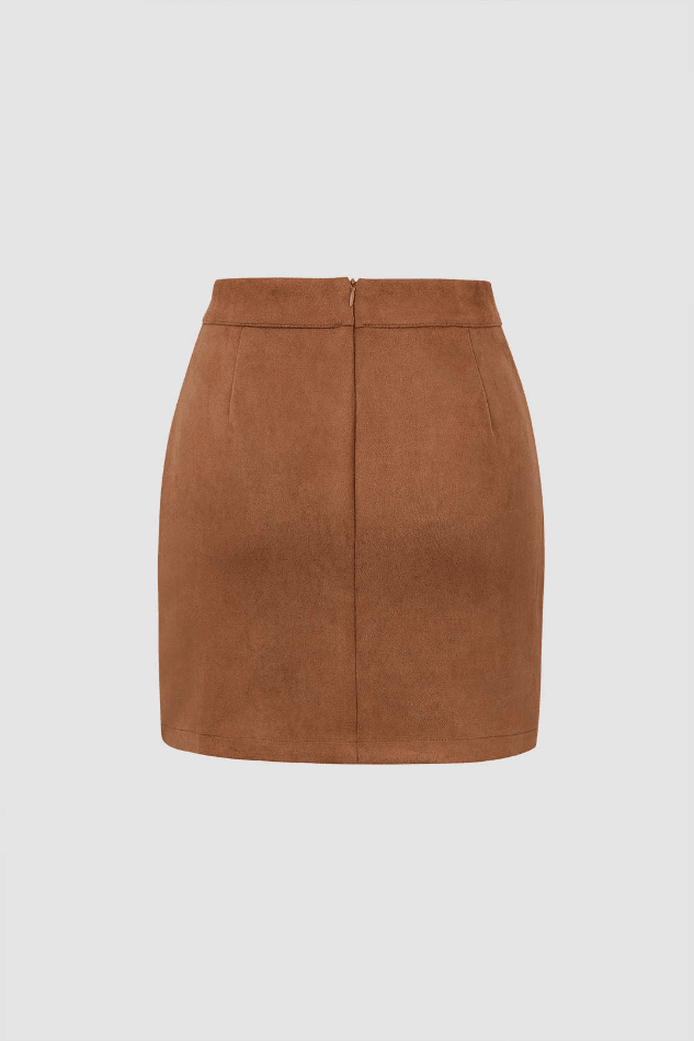 Faux Suede Side Slit Mini Skirt