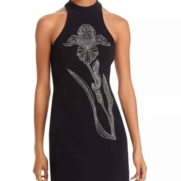 - Wear the Faye Sleeveless Mock Neck Crystal Floral Embellished Mini Dress with confidence and elegance. knowing that you're making a sophisticated style statement.