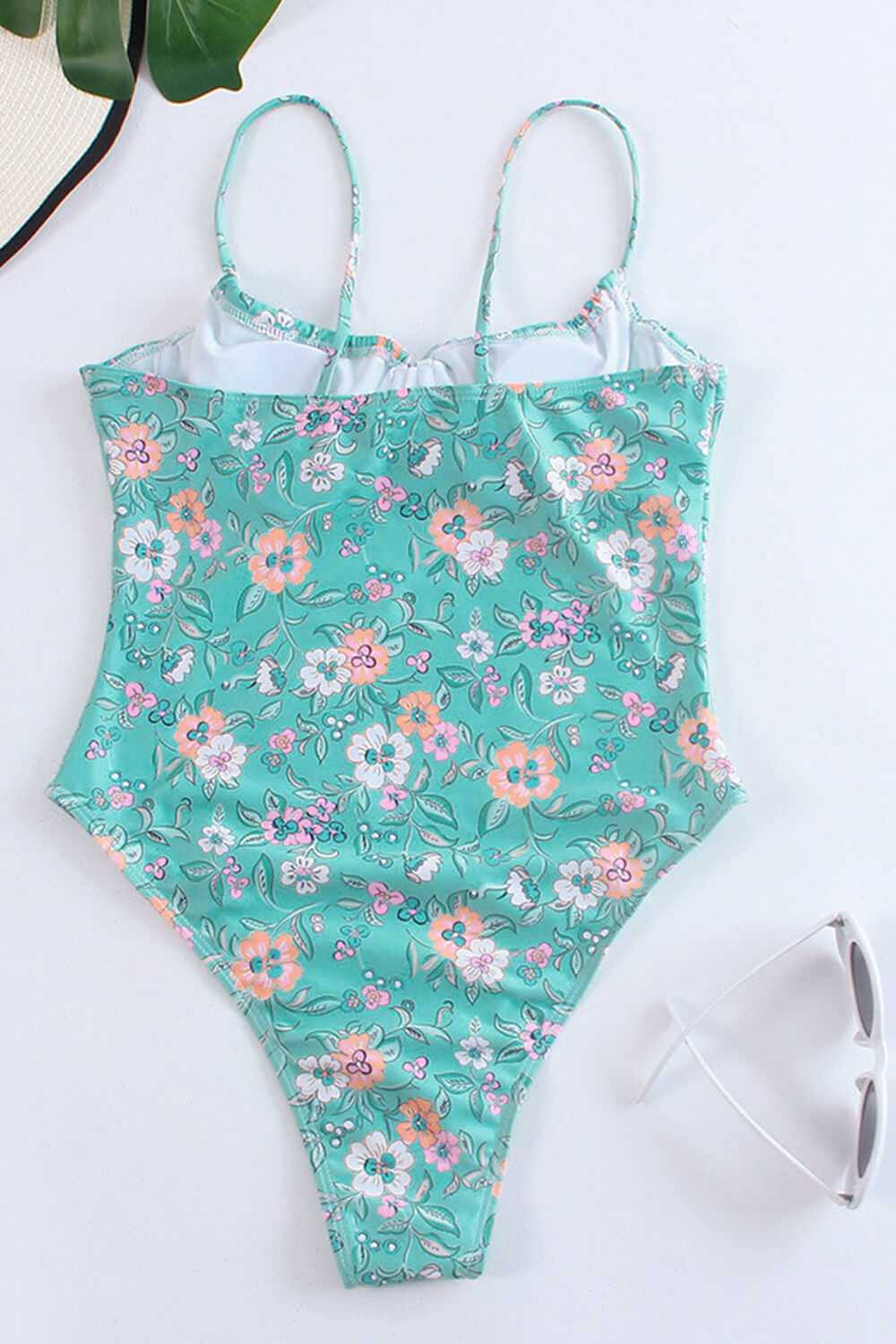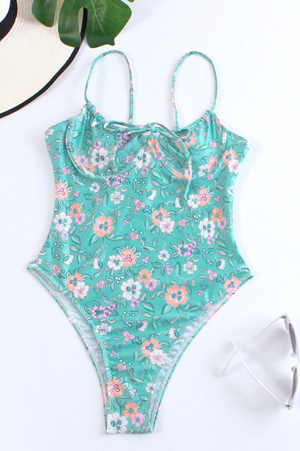 Blossom Tie Front Underwire One Piece Swimsuit - Aqua