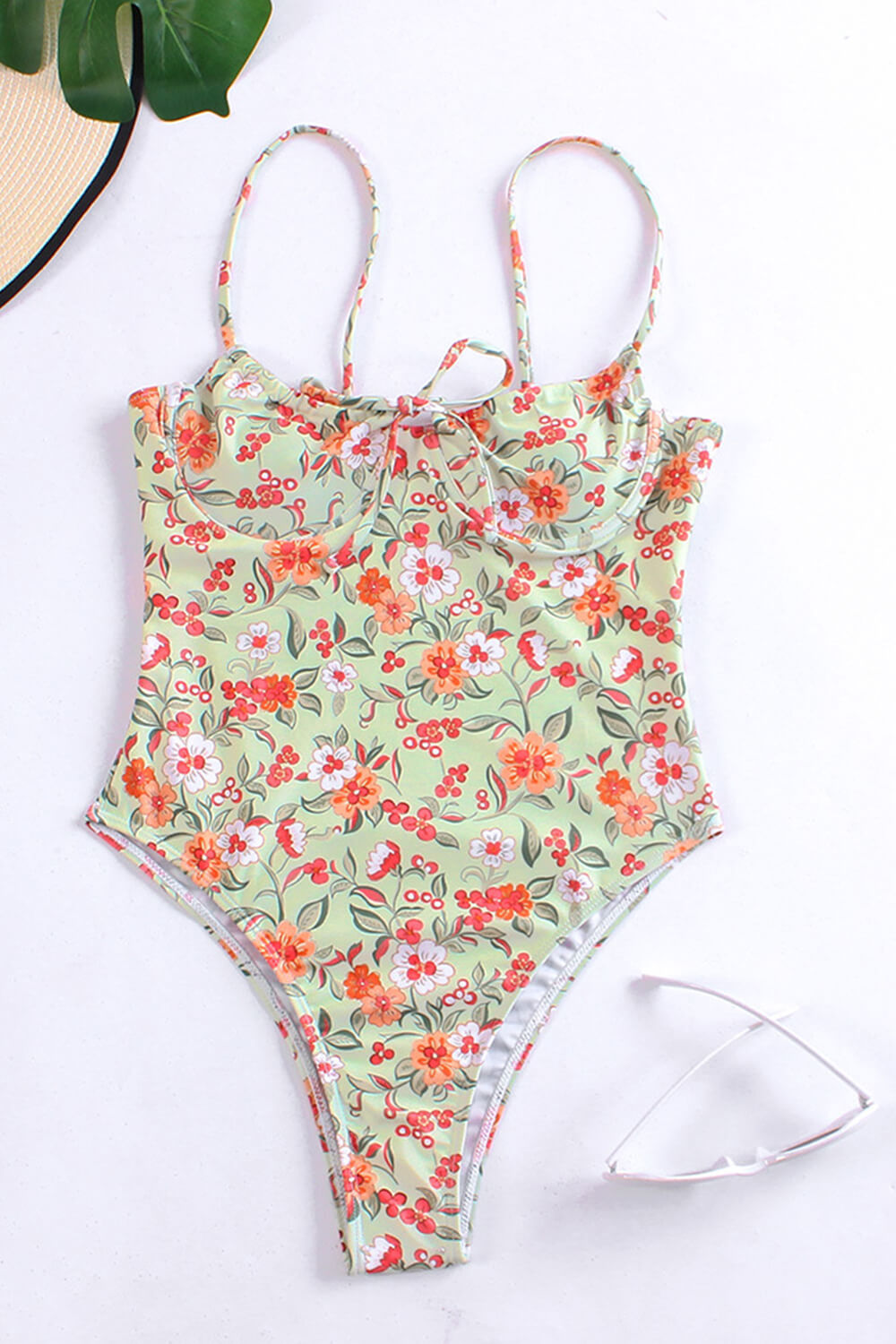 Blossom Tie Front Underwire One Piece Swimsuit - Lemon