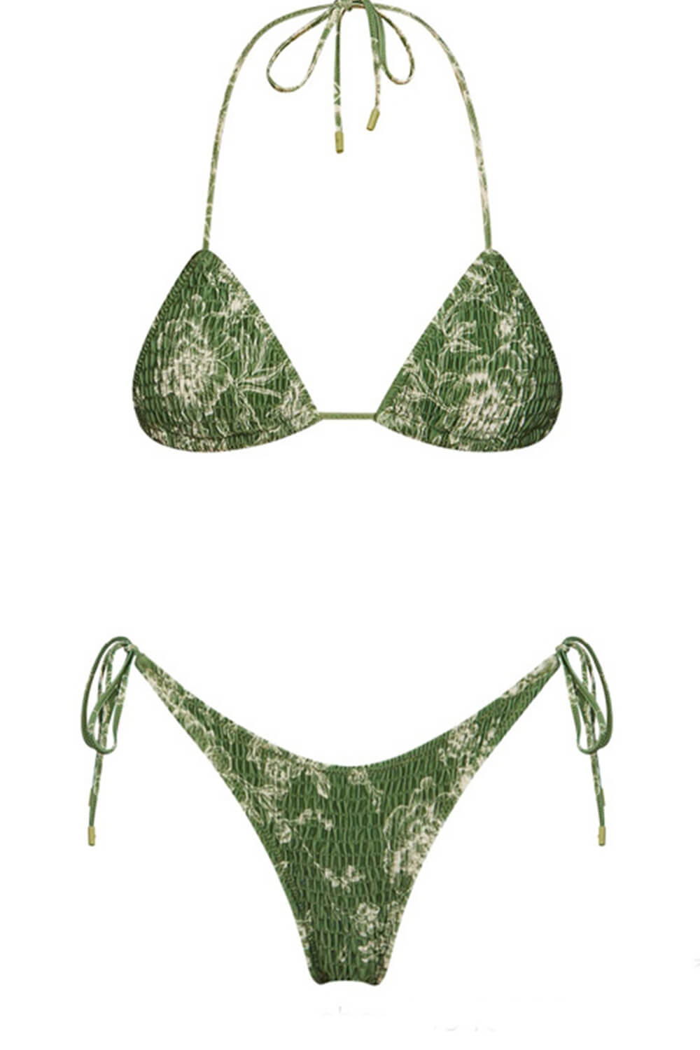 Green Floral Crinkle Halter Tie Side Bikini Set