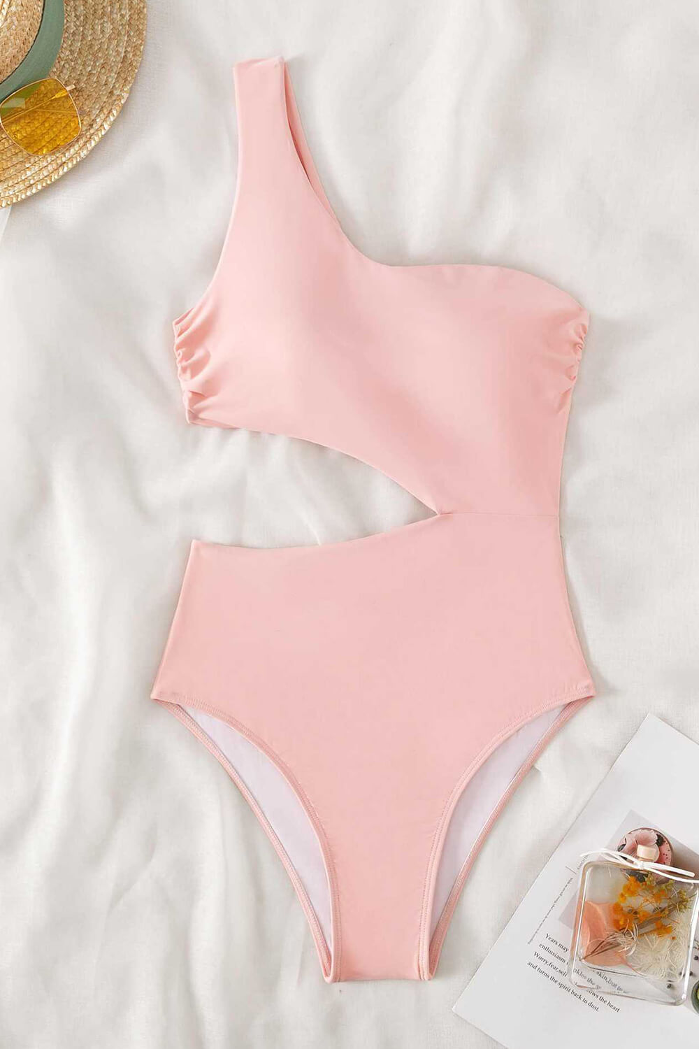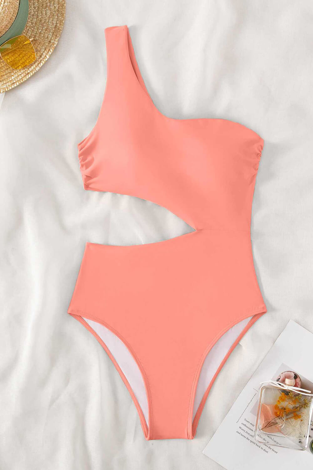 Cut-Out One-Shoulder One Piece Swimsuit - Black/Red/Petrol/Lightpink
