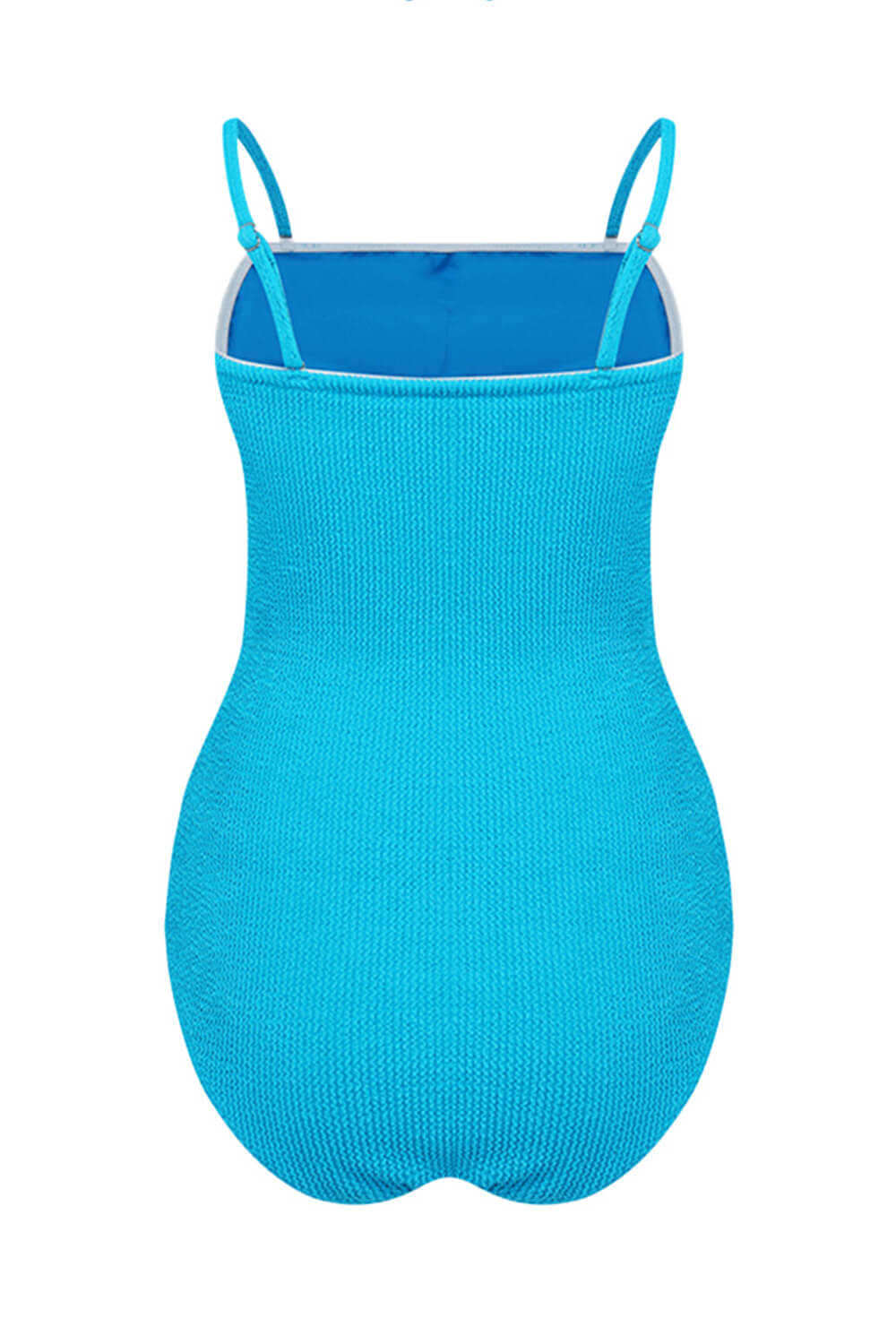 Crinkle Cut-Out Tie Front One Piece Swimsuit - Light Blue