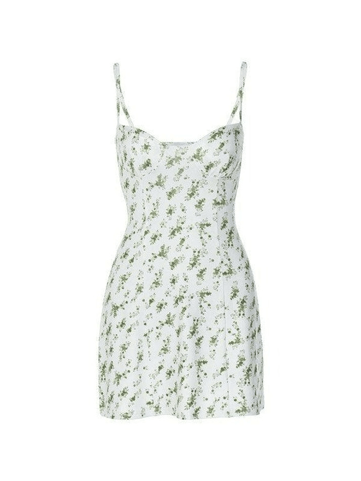 Description: Features dainty floral print all over. shaped to a bodycon silhouette. with adjustable shoulder straps and an open-back design.