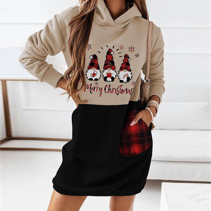 Helen Long Sleeve Hooded Mini Christmas Dress