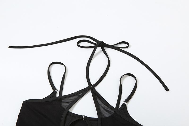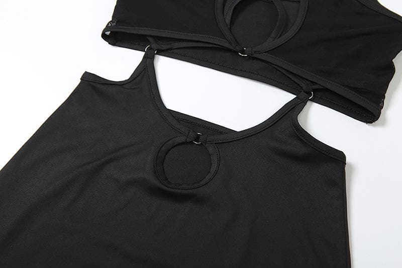 Hollow out halter backless patchwork solid mini dress