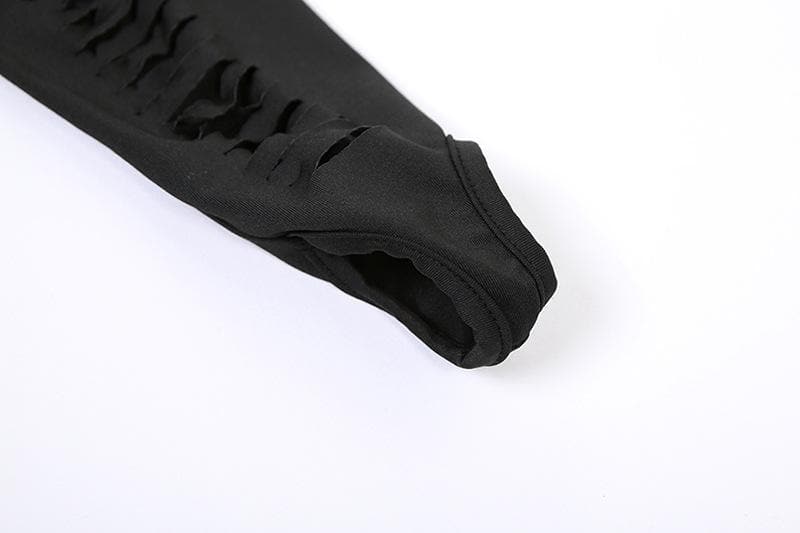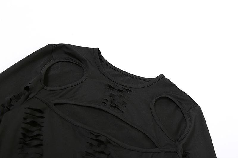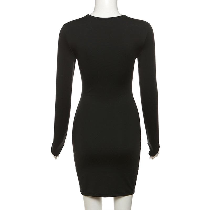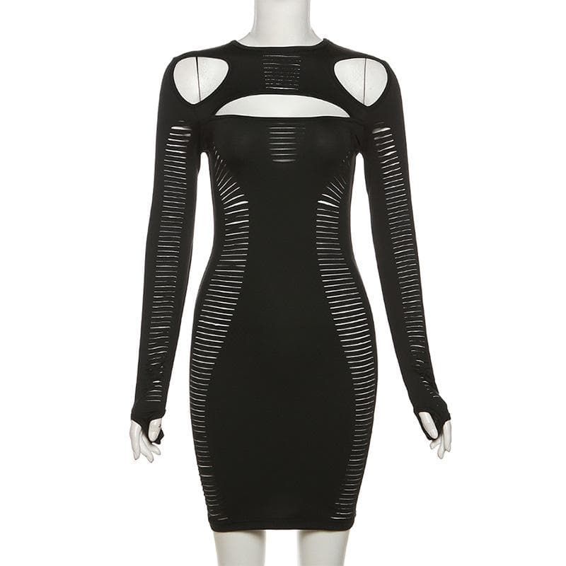 Hollow out long sleeve gloves solid crewneck mini dress