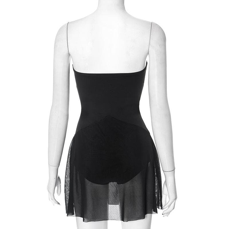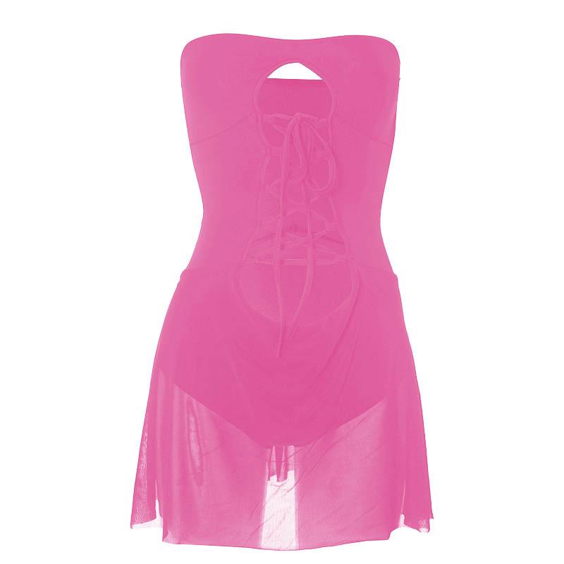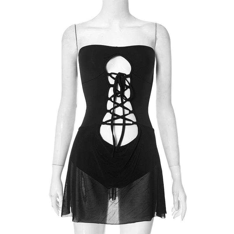 Hollow out solid lace up ruffle backless mini dress