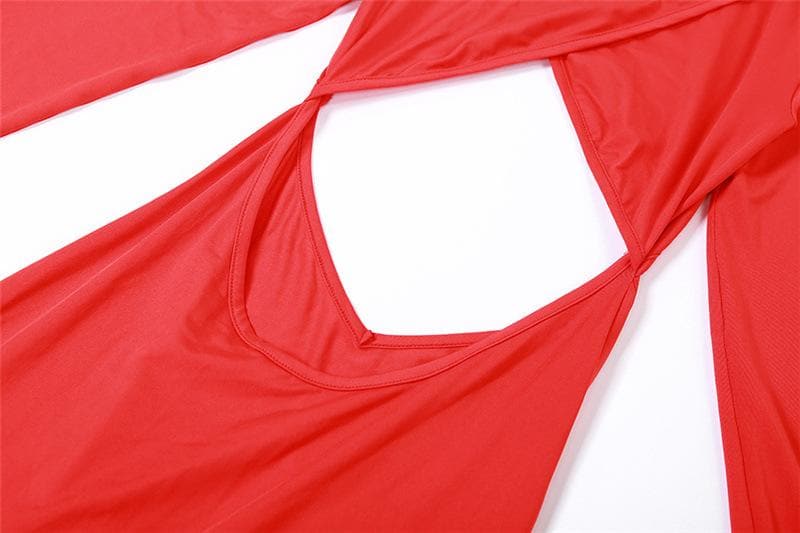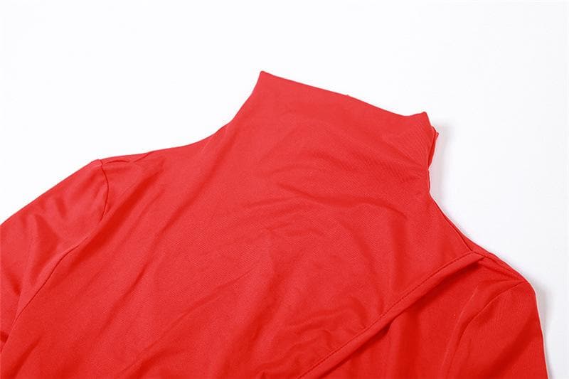 Hollow out solid long sleeve high neck zip-up maxi dress