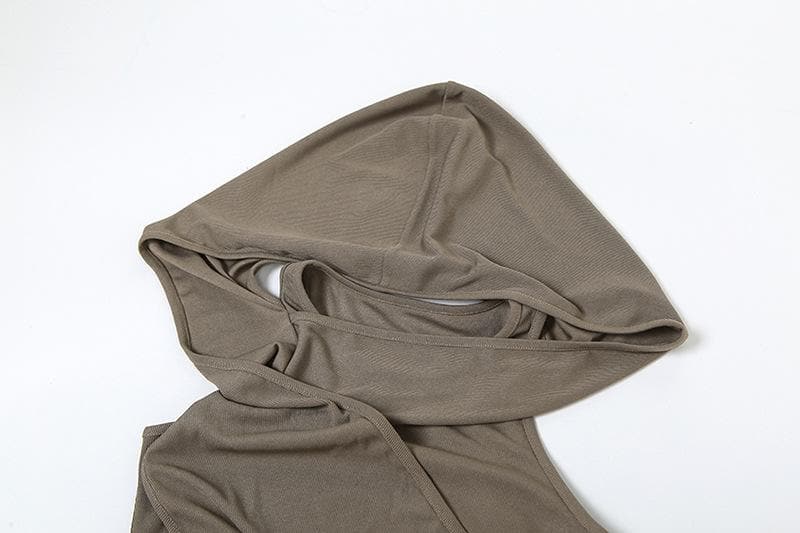 Hoodie ruched gloves irregular sleeveless slit maxi dress